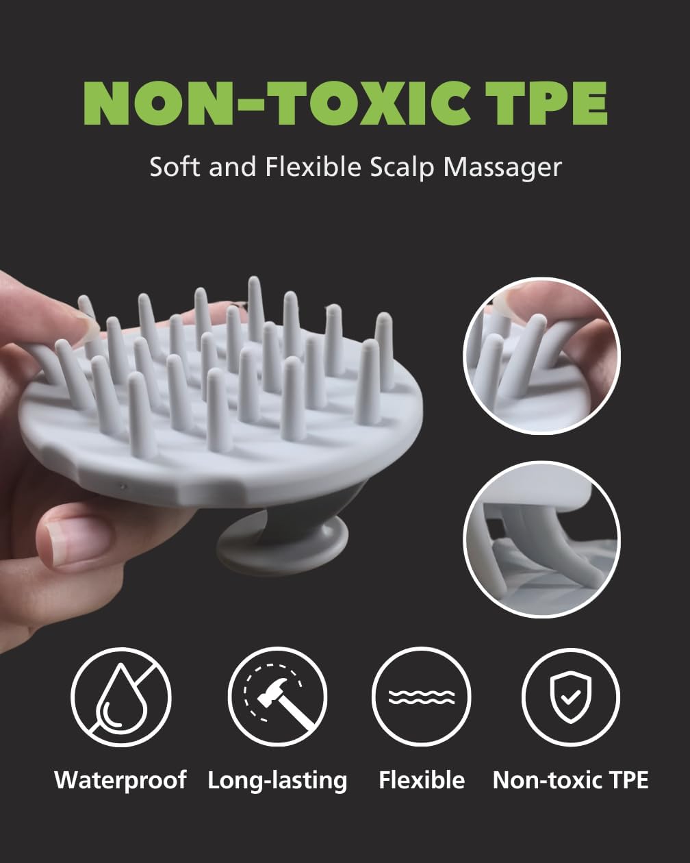 • 2-in-1 Scalp Massager Set – Includes two scalp scrubbers with thick and thin bristles for deep cleansing and an invigorating massage experience.