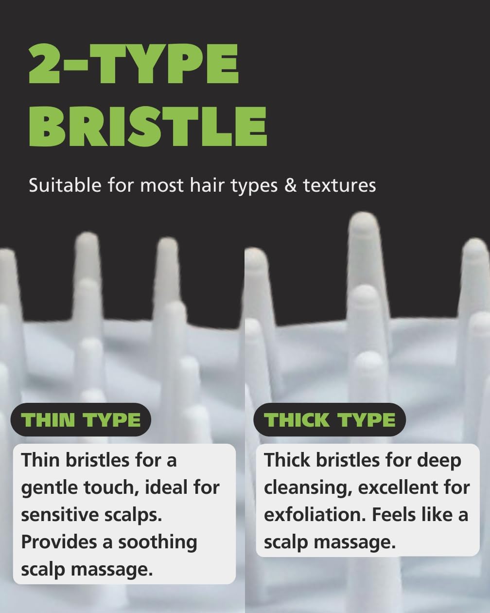 • Gentle Yet Effective Cleansing – Thick bristles provide deep exfoliation, while thin bristles offer a soothing, gentle massage for all hair types.