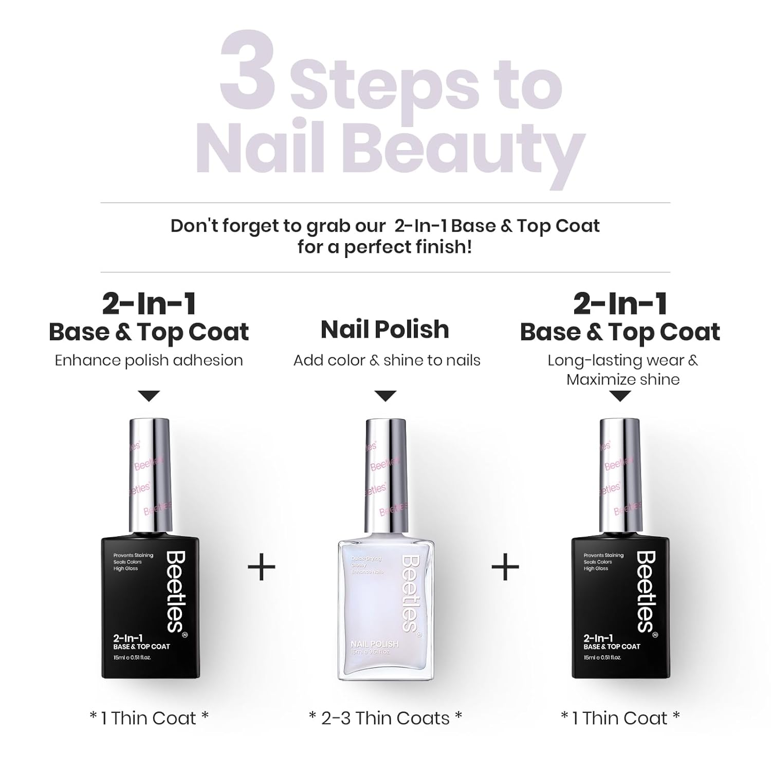 • 【Quick Dry Nail Polishγ€‘οΌšDrying in just 1-2 minutes in air, without the use of UV lights, making manicures fast and hassle-free. It's time to say goodbye to UV Light with beetles nail polish. Base coat & top coat are required! This item does not include base&top coat, which needs to be purchased separately.