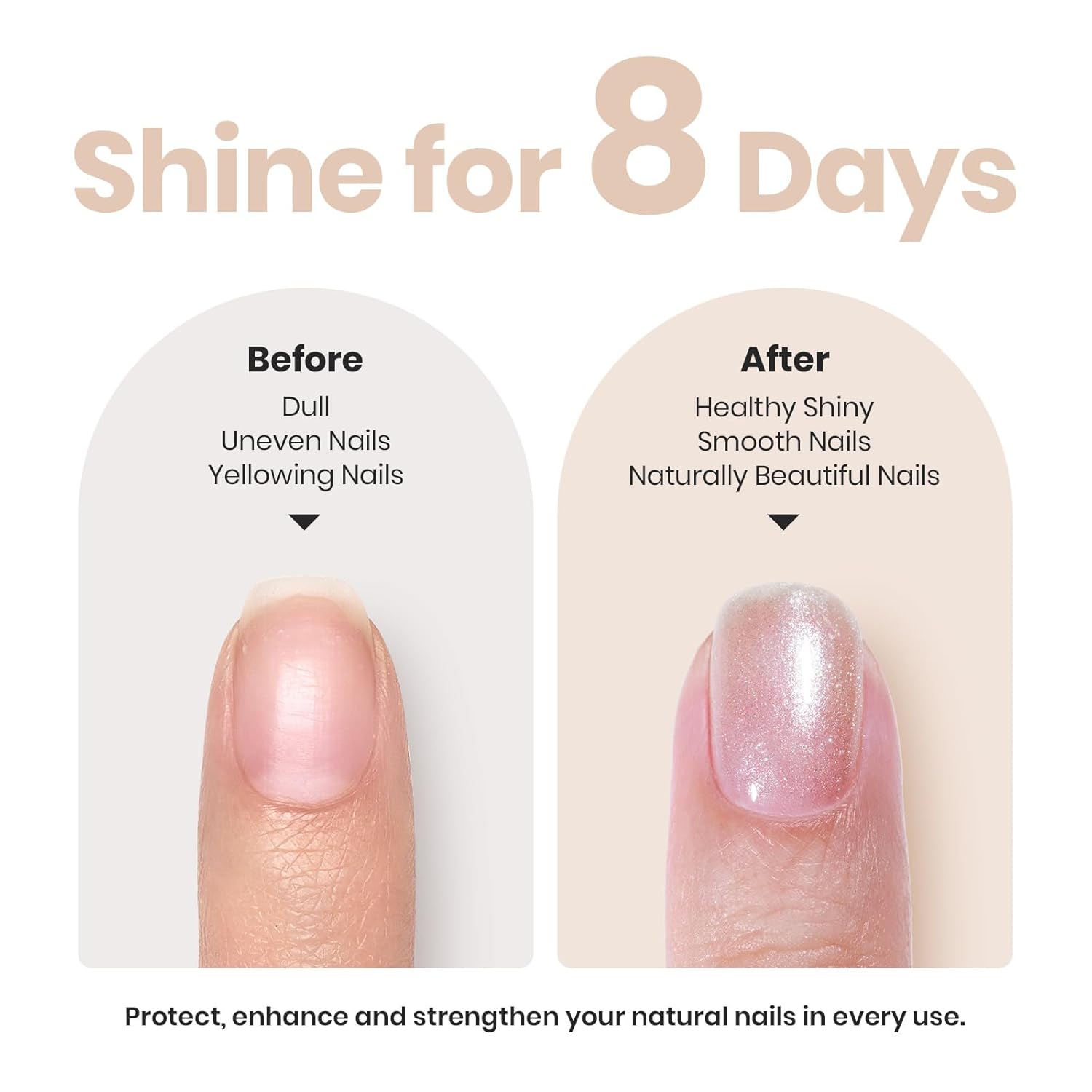 • 8 + Days of Lasting Gloss and Golden Fizz Color:Enjoy up to 8 days of vibrant, glossy color that keeps your natural nails looking fresh. The long-lasting formula ensures your nails stay shiny and flawless, reducing the need for frequent touch-ups.