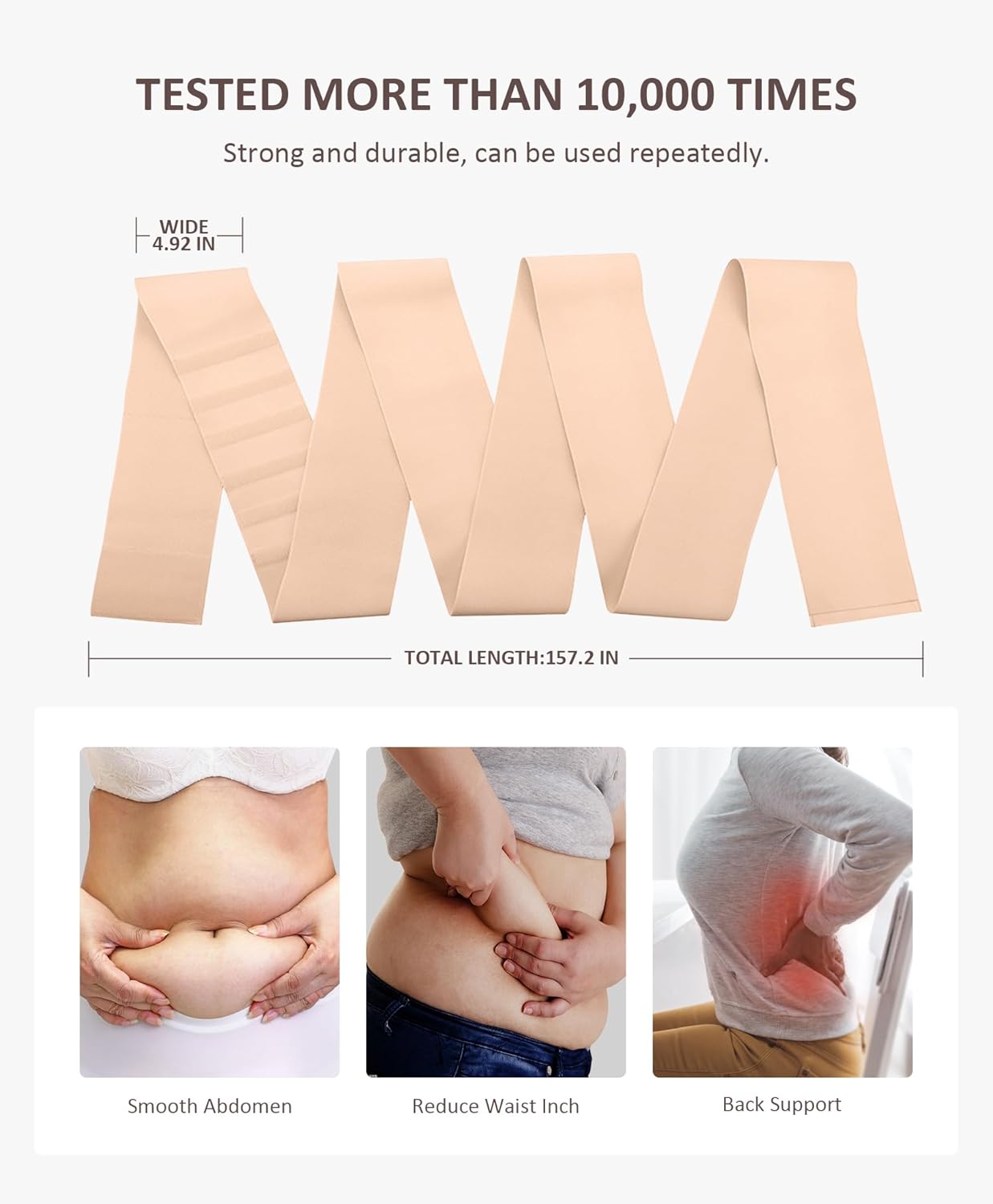 • One Size Fits All: Our waist wrap is designed to accommodate all body types with its one-size-fits-for all size within 23.5 IN-47.5 IN waistline. Measuring 157.2 IN in length and 4.92 IN in width, this bandage wrap offers versatility in snatching your waist, allowing you to adjust the tightness to your preference to your preference for ultimate comfort. Warm tips-Thinner women need to wrap more circles, will appear thick, full-figured women can wrap fewer laps and also have tummy coutrol.