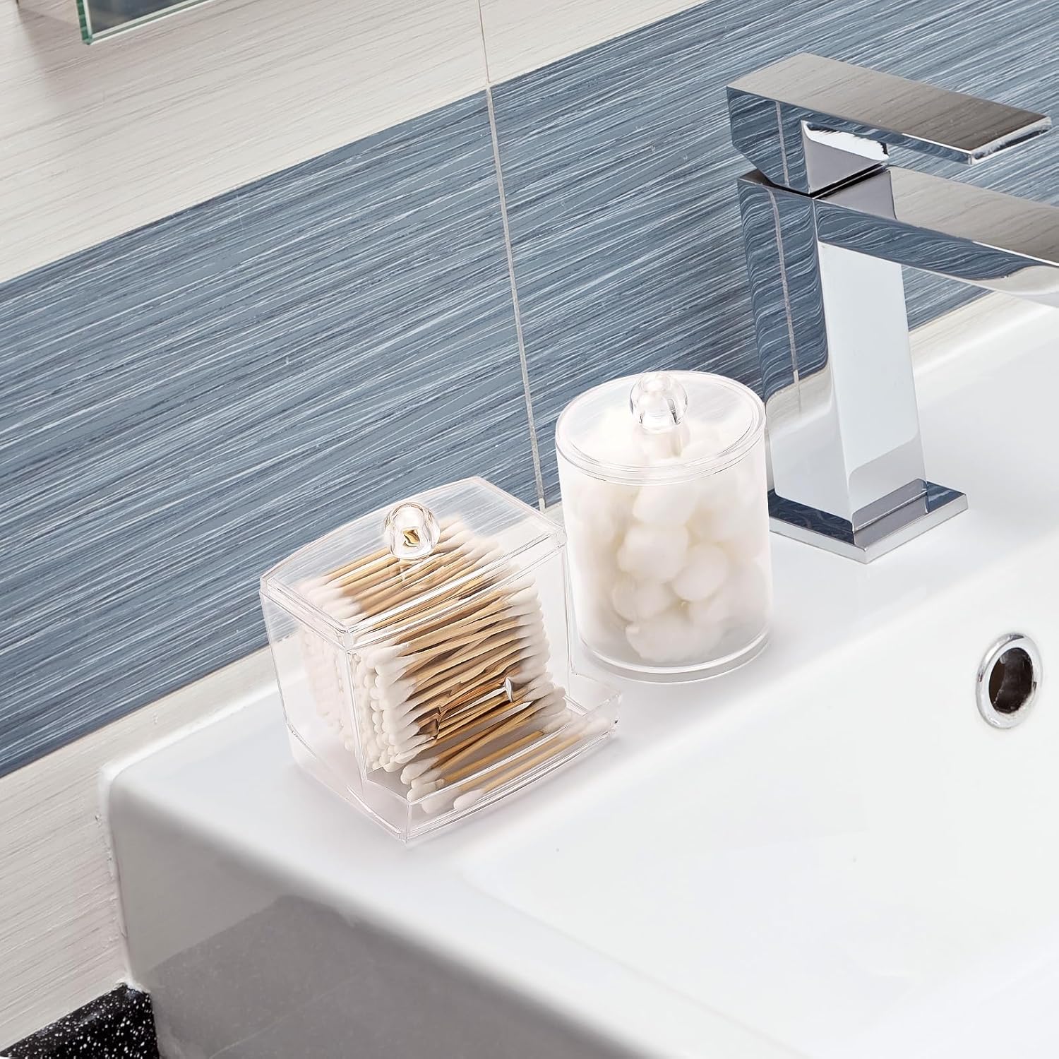 • Bigger than Before - Compared to the previous one, this one is bigger, 1pcs Qtip Dispenser - 10oz (3.8x3.2x3 in), 1pcs Cotton Ball Holder - 12oz(3.6x3 in). Putting&Picking cotton swabs more easier