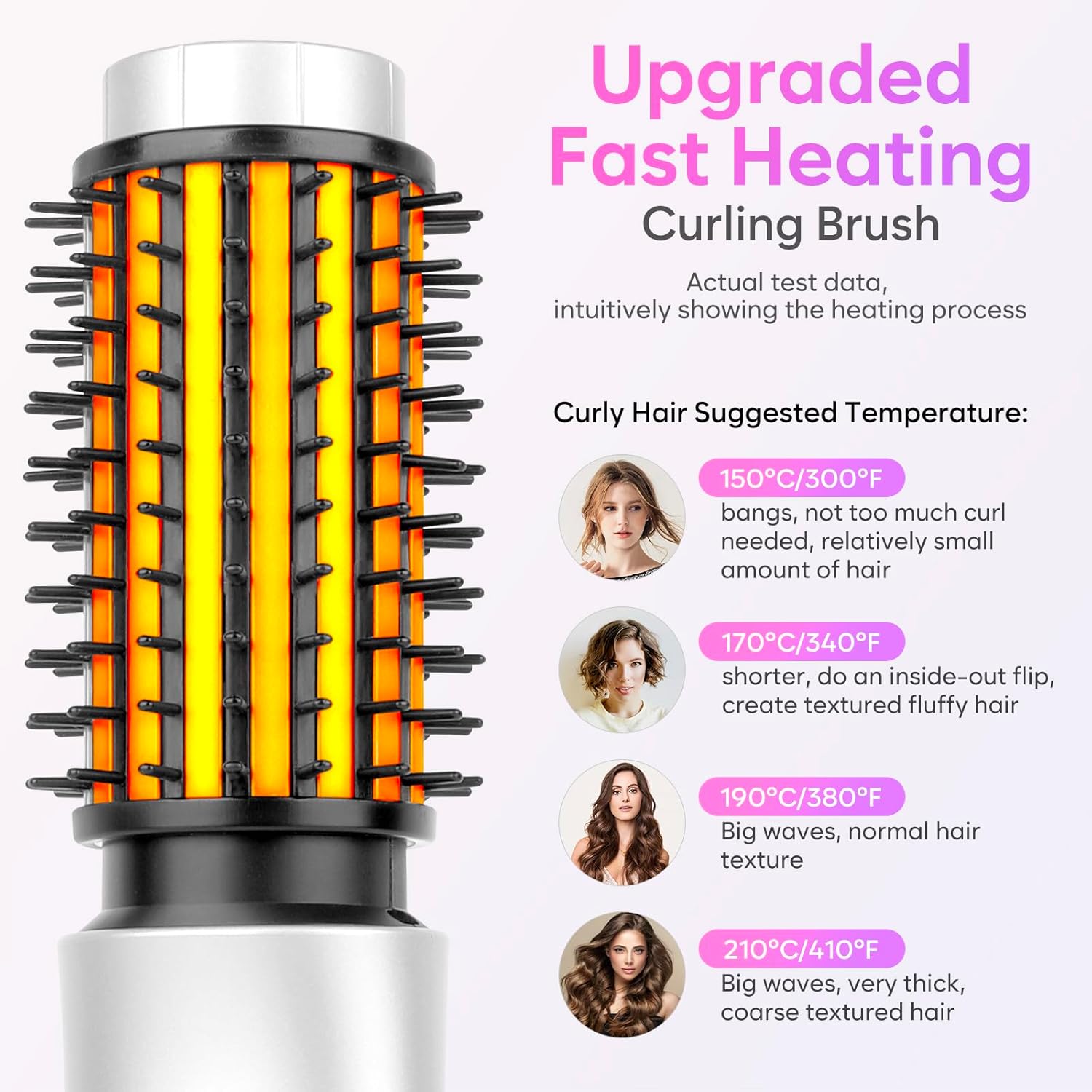 • 【Negative Ion Hair Care】: Equipped with ionic technology, this curling iron brush releases negative ions during use, which can help reduce static and frizz, potentially protecting your hair and making it smoother and shinier.