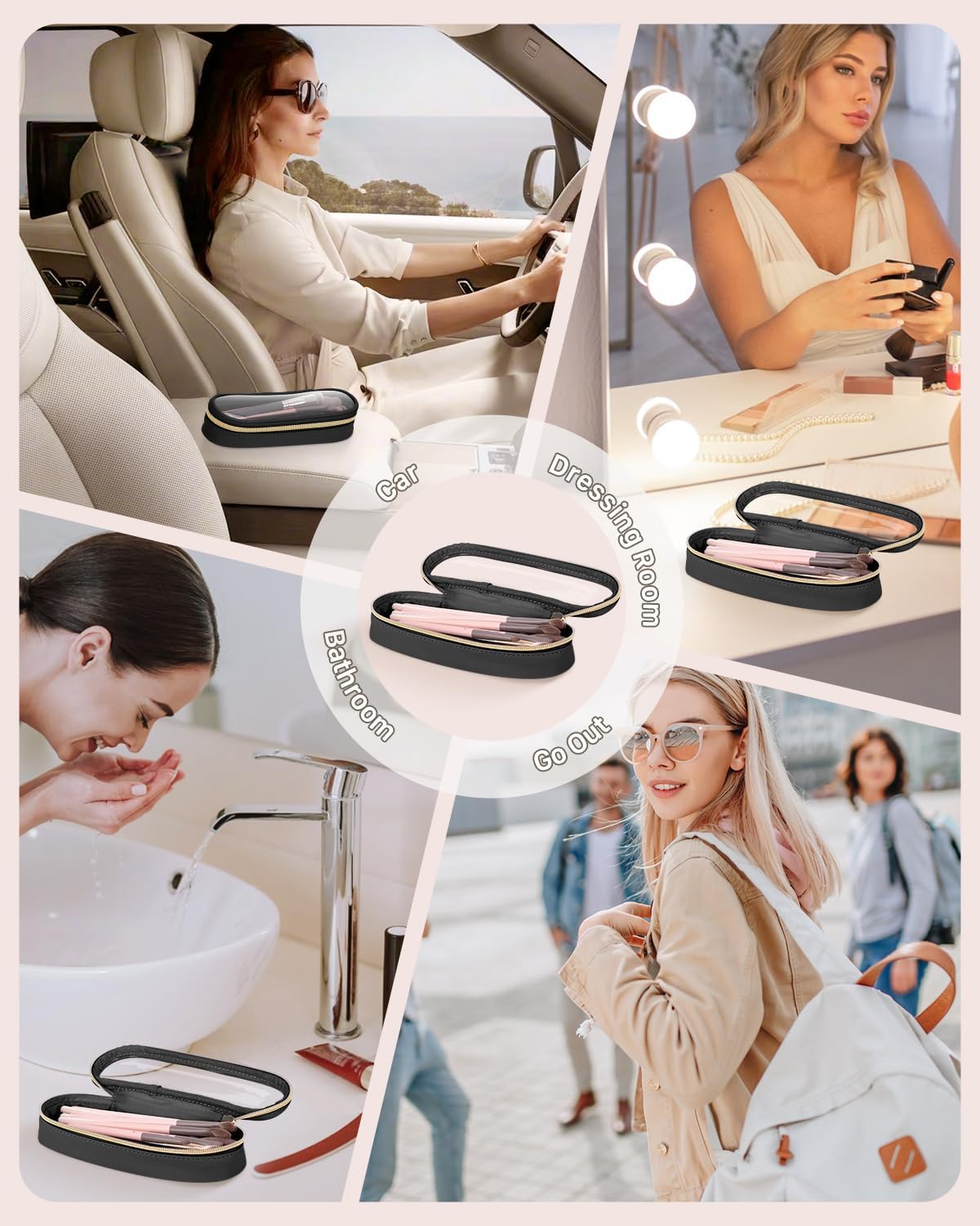 • Practical Metal Zipper Design: The chic metal zip not only enhances the overall aesthetic but also ensures a secure closure. Even if your makeup brush bag falls off, your makeup brushes won't fall out.