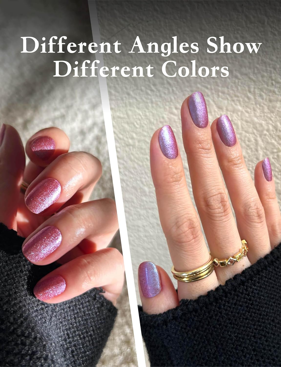 • [DESIGN]: Experience the magic of gradient glitter with our nail stickers, which shift colors from different angles. The dynamic gradient effect creates a mesmerizing sparkle that transforms with every movement, providing a unique and captivating look that stands out from every perspective