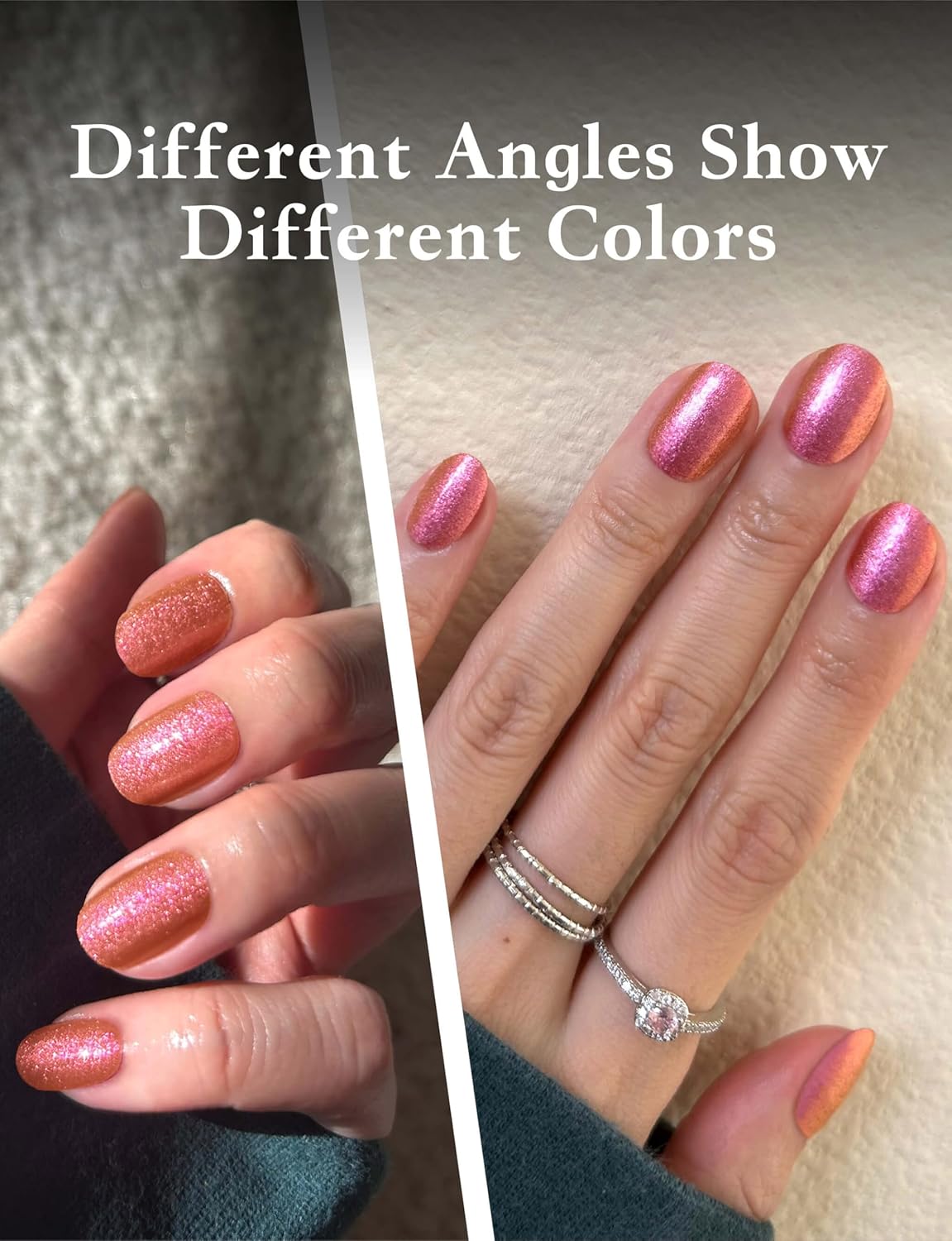 • [DESIGN]: Experience the magic of gradient glitter with our nail stickers, which shift colors from different angles. The dynamic gradient effect creates a mesmerizing sparkle that transforms with every movement, providing a unique and captivating look that stands out from every perspective