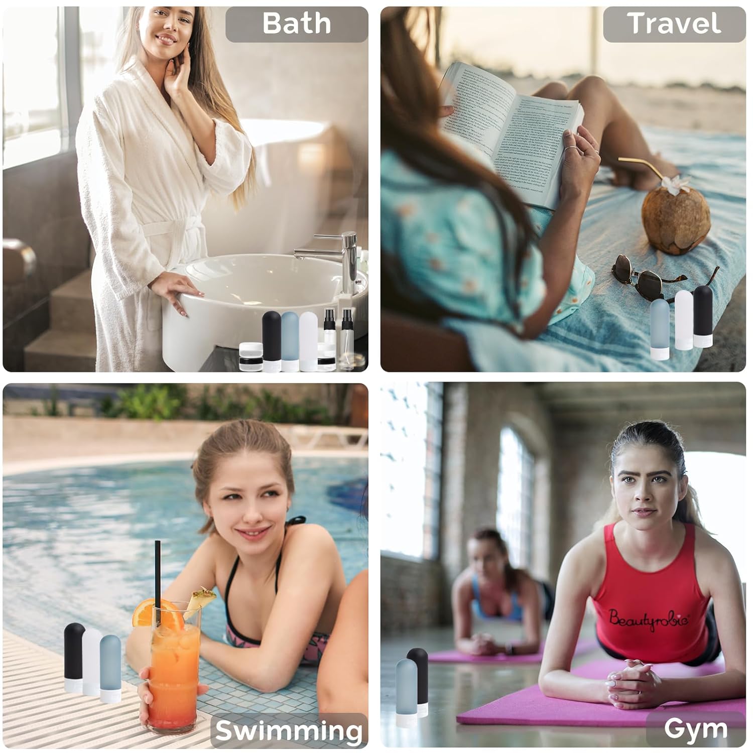 • TSA Approved Travel Bottles: All our bottles and pouches are TSA approved size which pass the airport security and Transportation Safety Administration. You can carry them with you on airplane.