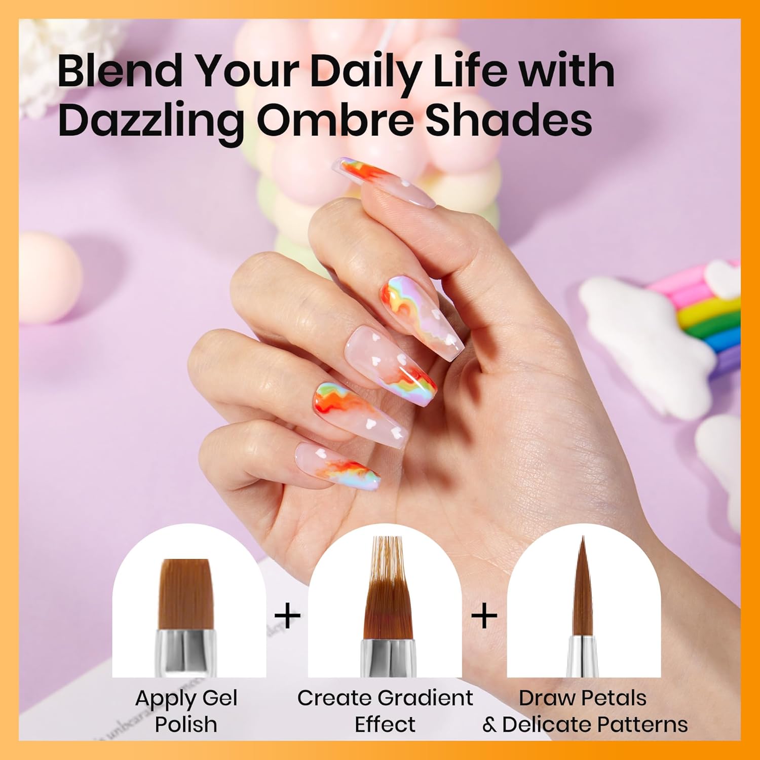 • Double-Headed Design: Each brush features a double-headed design, allowing you to complete all nail art steps with just one brush, eliminating the need to switch mid-process. With oval, flat, dot, petal, french, and gradient brushes, it meets all your nail art needs, making your creation process more efficient and convenient.