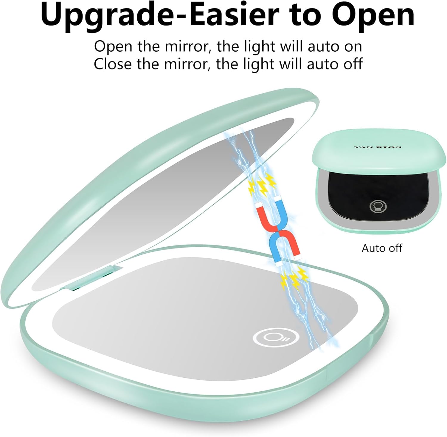 • LED LIGHTING FOR ALL SITUATIONS:Equipped with dual LED lights, this small hand held mirror offers three different light settings to perfectly match any environment. The automatic shut-off feature ensures your lighted travel makeup mirror conserves battery life, making it a reliable travel essential.