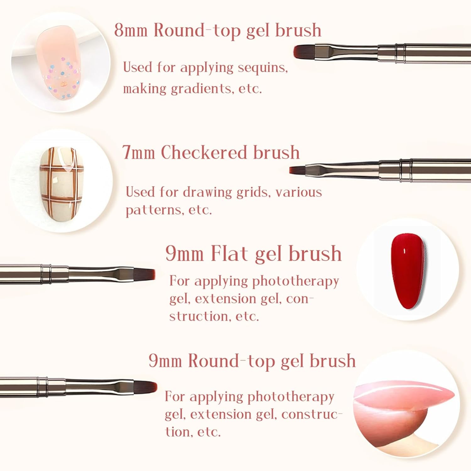 • Ergonomic and Comfortable Handles: The brushes feature lightweight and ergonomic handles that provide a comfortable grip, reducing hand fatigue during extended use. Whether you're a professional nail artist or a beginner, these brushes offer a seamless and enjoyable application experience.