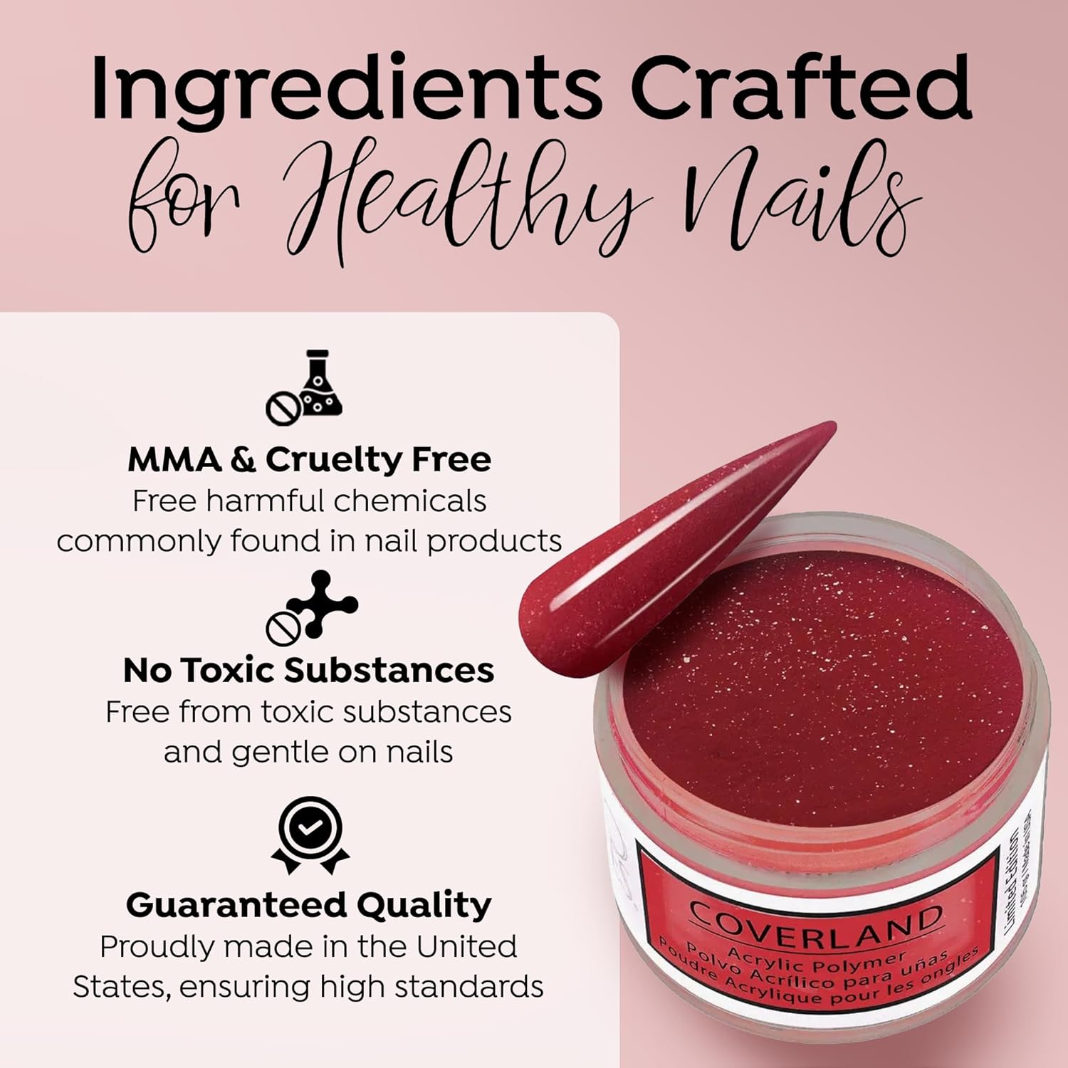 • PROFESSIONAL GRADE: The flexibility and adhesion properties of Coverland colored acrylic nail powder make it easy to shape nails with precision, and offers nice control for professionals who prefer to work with a polymerization rate of moderate to fast.