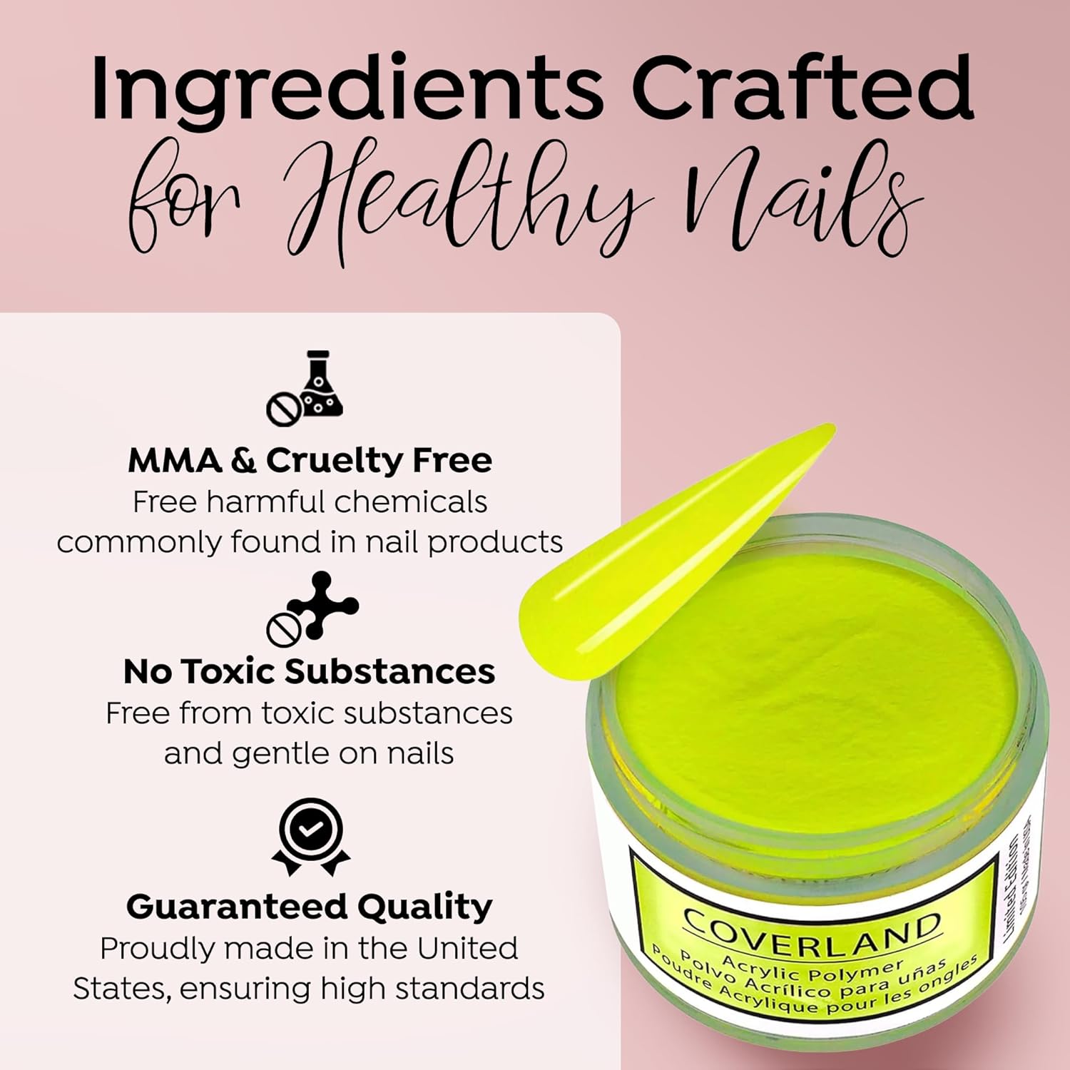 • PROFESSIONAL GRADE: The flexibility and adhesion properties of Coverland colored acrylic nail powder make it easy to shape nails with precision, and offers nice control for professionals who prefer to work with a polymerization rate of moderate to fast.