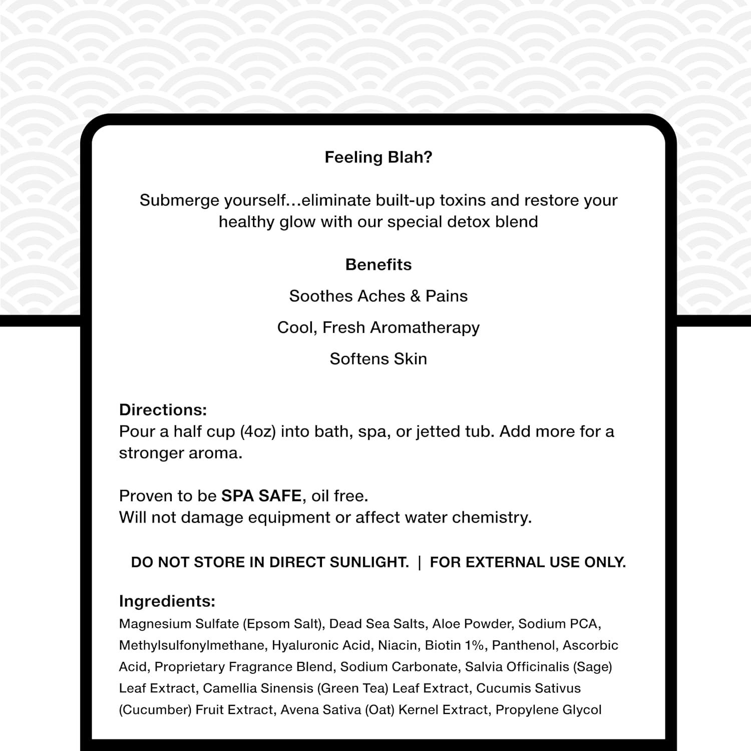 • FORMULATED FOR SPA SYSTEMS: Built to keep things simple and clean, this formula won’t interfere with jets, clog filters, or alter water chemistry—just an easy pour and a better soak.