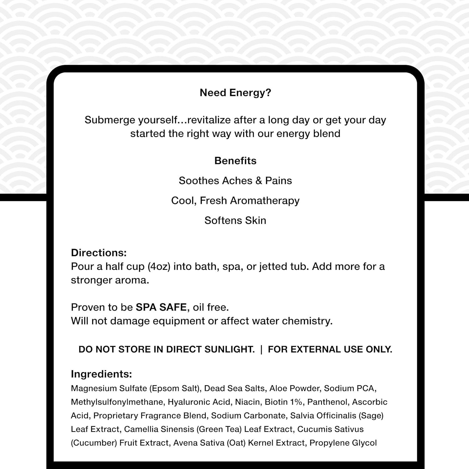 • UPLIFTING SCENT FOR A FRESH START: This energizing blend delivers a crisp, citrus-forward aroma that pairs perfectly with spa and hot tub rituals. These aromatherapy bath salts offer a clean way to refresh your senses—morning or evening.