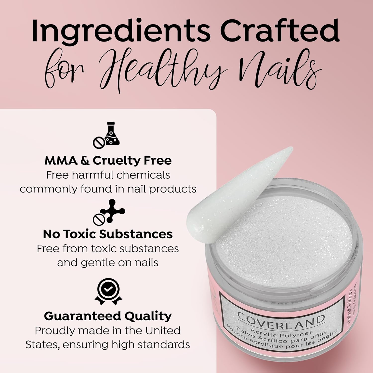 • CAMOUFLAGE IMPERFECTIONS: Coverland Polymers cover the nail bed with highly saturated skin tones and colors, helping to improve aesthetic appearance and hide imperfections. This specially formulated solution ensures a smooth, even application, allowing you to create flawless nail art with ease