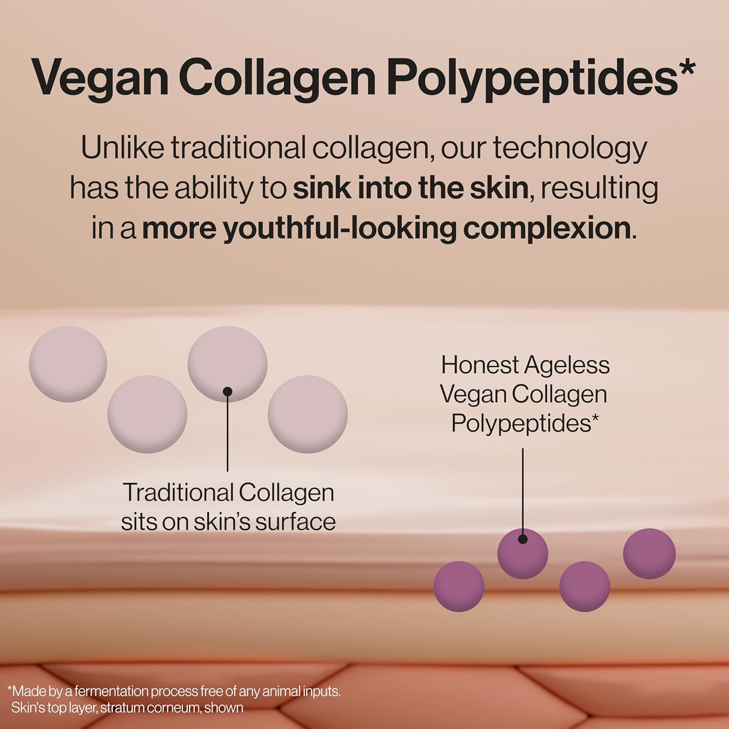 • VEGAN COLLAGEN and ELASTIN POLYPEPTIDES: Advanced biomimetic actives mimic skin’s natural supporting elements of collagen and elastin to help deliver firmness and elasticity. Unlike traditional collagen, Vegan Collagen Polypeptides have the ability to sink into skin. When combined with Vegan Elastin Polypeptides, known to deliver antioxidant properties, the result is firmer, more youthful, healthier-looking skin