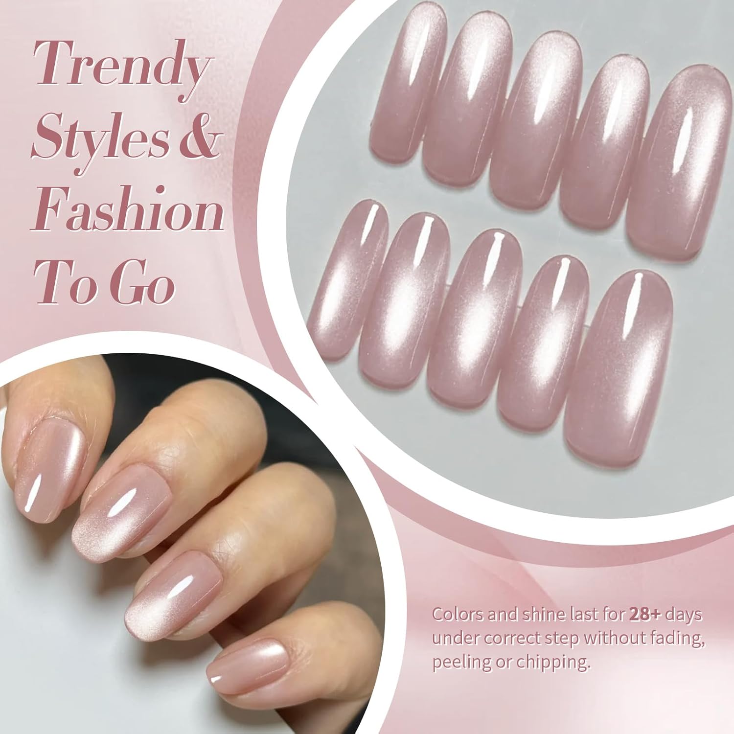 • PACKAGE CONTENTS:15ml Milky Pink Cat Magnetic Gel, The newly upgraded formula can suck out the perfect cat-eye shapes in a few seconds. Cure under UV/LED nail dryer lamp, making it suitable for natural, false, and acrylic nails. Say goodbye to expensive trips to the salon and hello to DIY fun and professional-looking results!