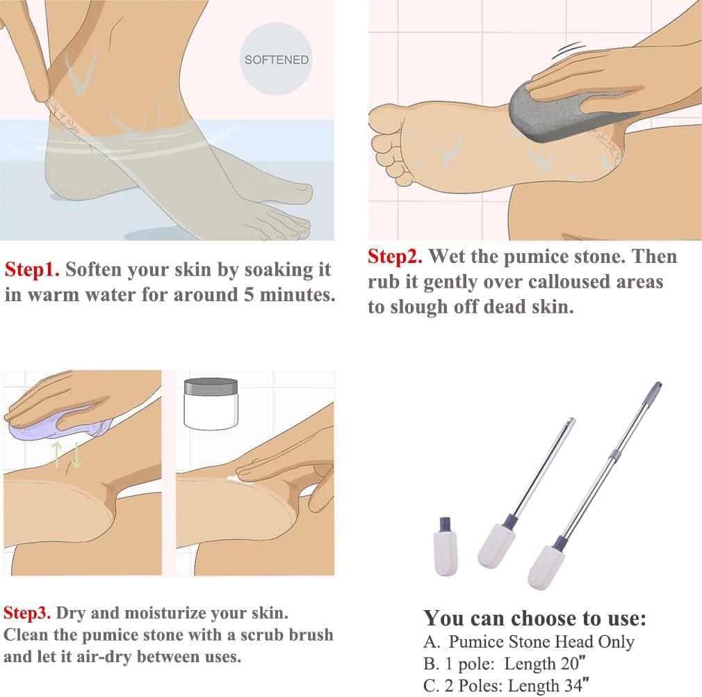 • 【Package List】You will receive 2 foot scrub pumice heads, 2 Stainless Steel Poles,1 User Manual. This foot scrub is an natural, effective tool to give you smooth, supple feet.