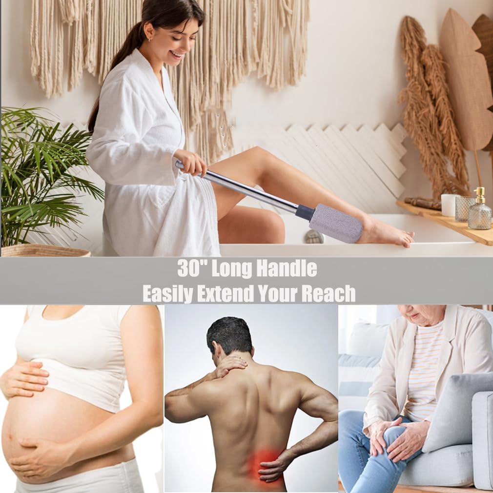 • 【30" Long Handle】Our Pumice Stone Designed with 30" Long Handle to help you effectively reach and clean hard-to-access areas on feet, ends awkward bending to clean your feet in the shower. Foot pumice is suitable for mother-to-be, senior citizens and those with limited mobility