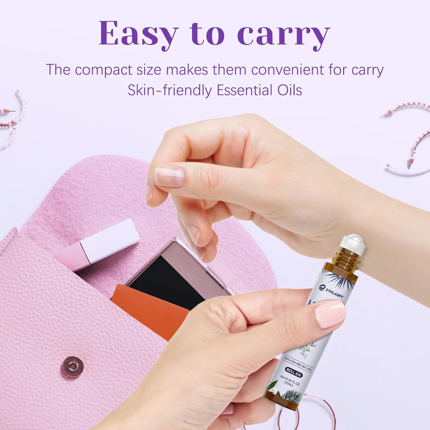• Travel-Friendly: Our pure lavender essential oils with rollerball are also perfect travel accessories The compact size of each oil makes them convenient for travel or go outside, easy to pass through airport security. A controlled amount of essential oil is released only when the roller ball moves across a solid surface so you don't have to worry about spills during travel. Take them with you wherever you go for calm and wellness!