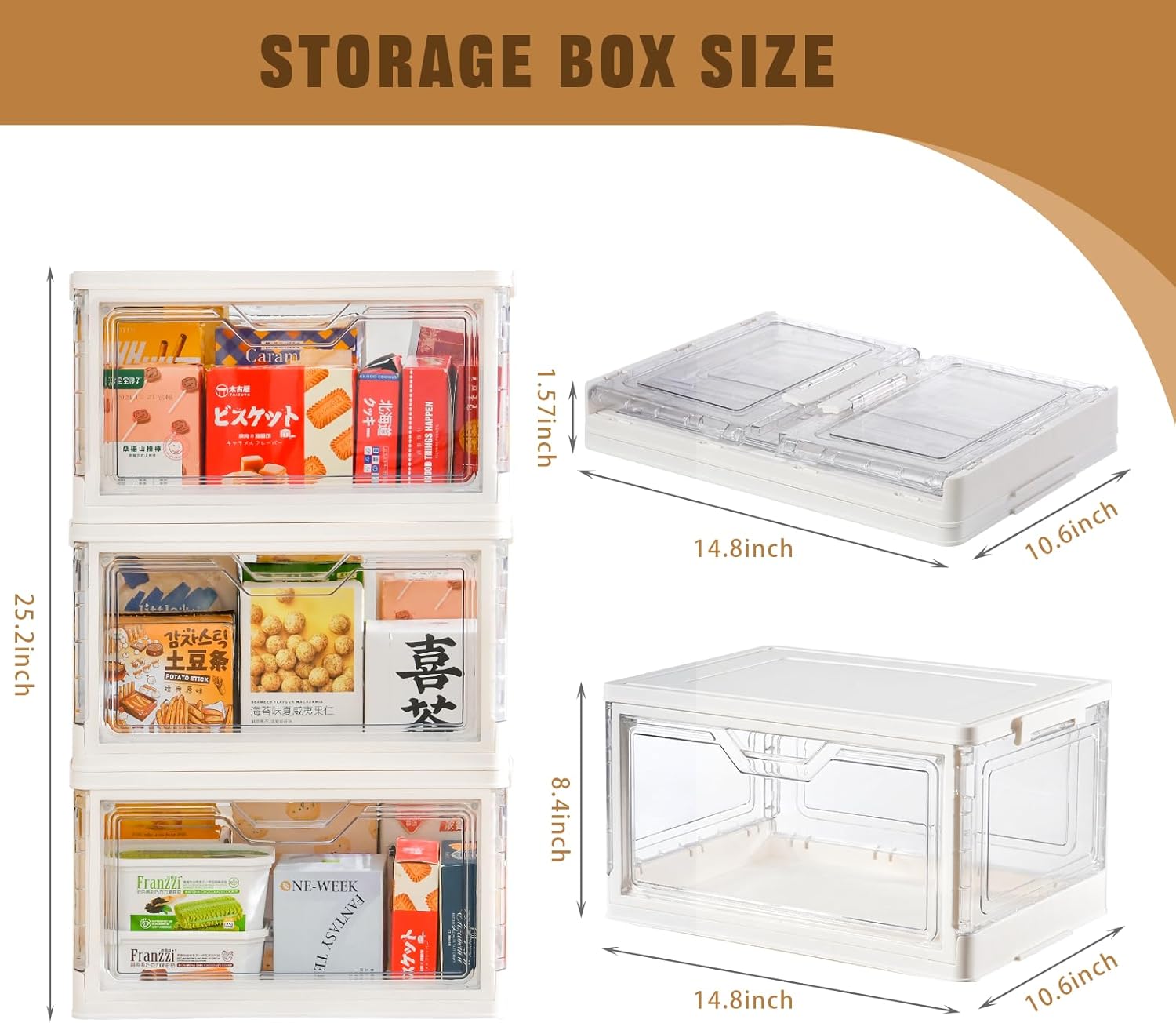 • Dual Opening Mechanism for Easy Access - Freebat storage bins with lids come with a convenient dual opening system. You can access your items through the front magnetic doors or the top lid, depending on your preference. This design ensures that you can easily retrieve items whether you're using the bins as stackable storage drawers or collapsible storage bins.