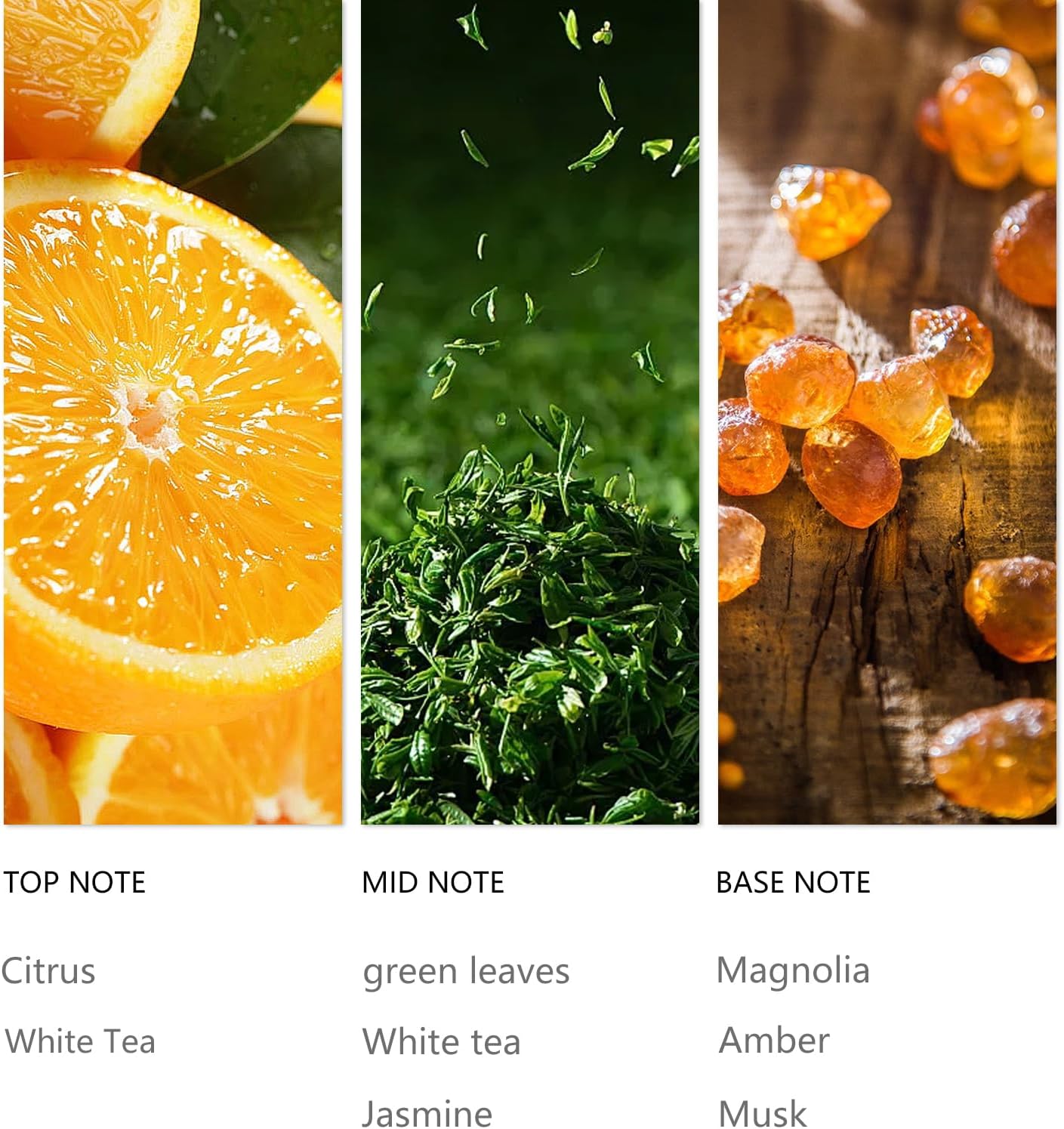 • Fragrance Oil Description: White Tea opens with the crisp purity of white tea, blooms with airy jasmine, and lingers with a whisper of warm musk—a serene and timeless scent