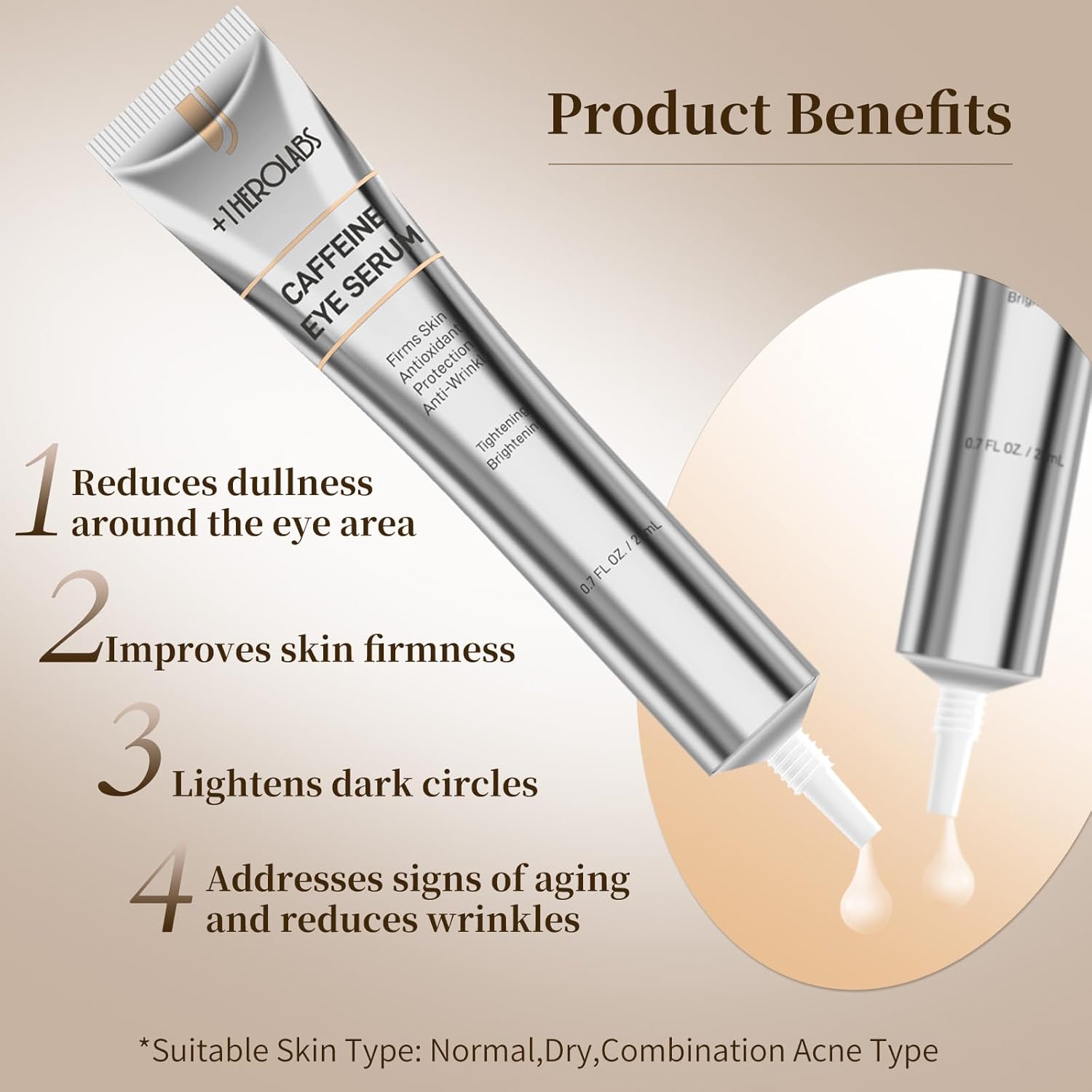• Gentle Care for All - This caffeine under eye cream is suitable for all skin types, including sensitive skin. Free from fragrances and harsh additives, it’s safe for daily use around the delicate eye area.