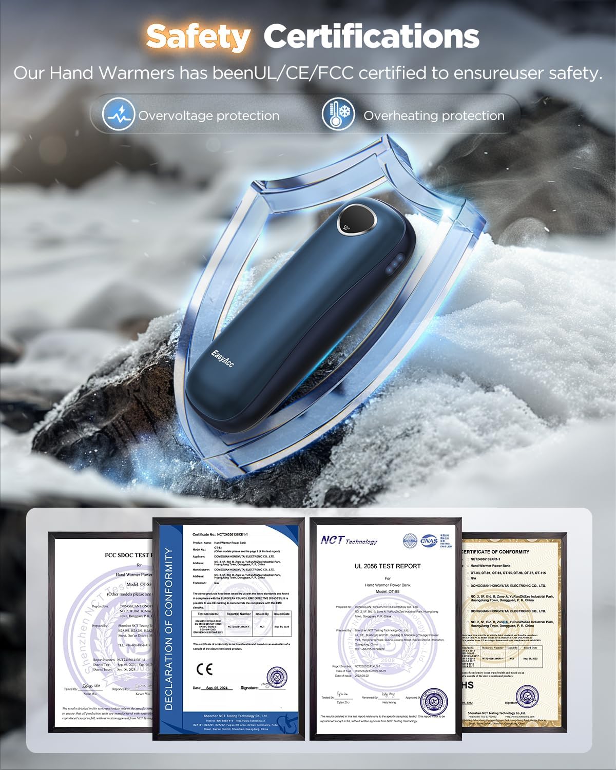 • 【A Heartfelt Gift for Cold Hands and Raynaud's Patients】Warm their hearts and hands with EasyAcc 2 pack rechargeable hand warmer, the perfect gift for those with Raynaud's disease or perpetually cold hands. Lightweight and rechargeable, it's ideal for home, work, or on-the-go. Give the gift of warmth and show your loved ones they’re truly cared for—because everyone deserves a little extra comfort this winter!