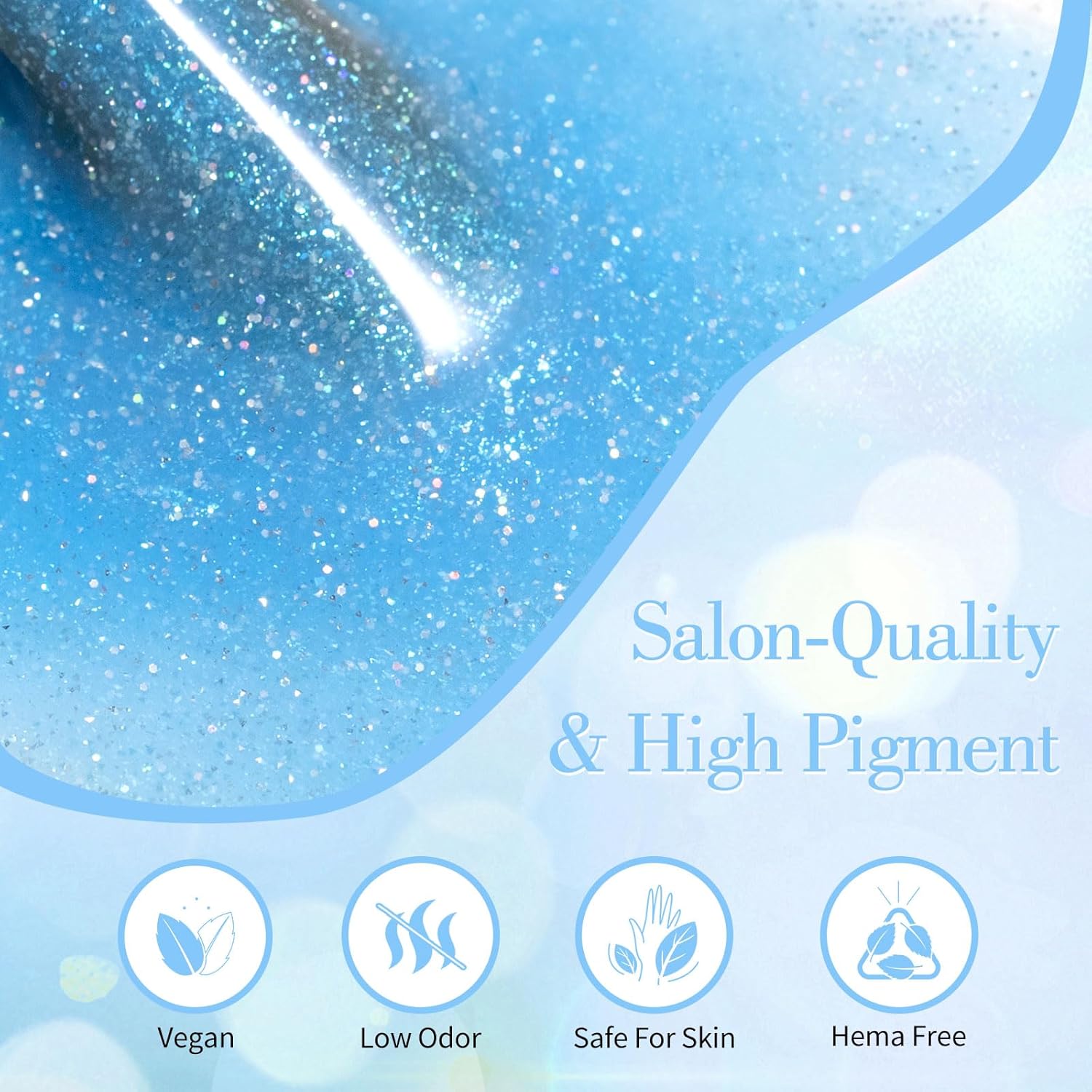 • Long-Lasting Durability: Designed for extended wear, this glitter gel polish is chip-resistant and maintains its vibrant shine for up to three weeks