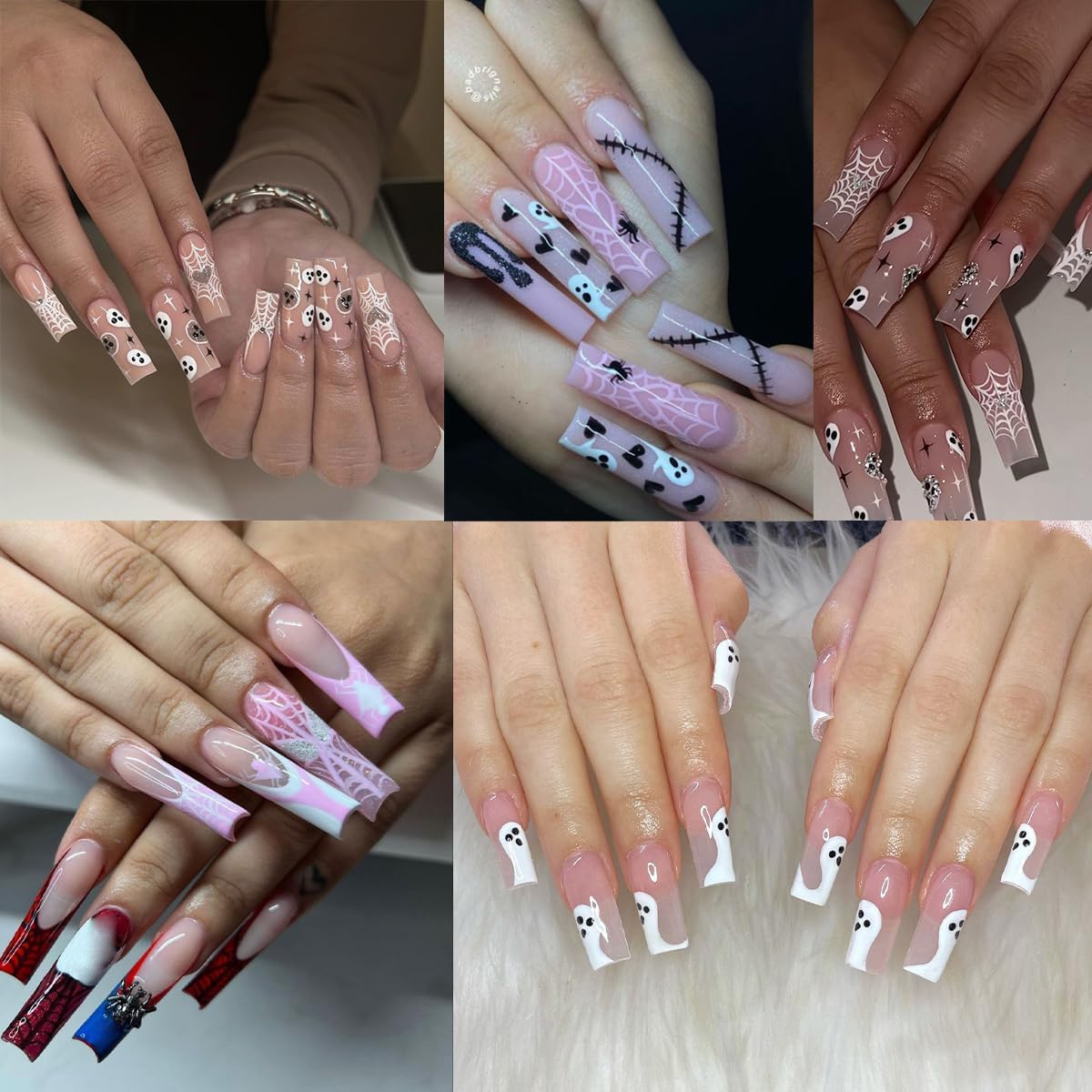 • Easy to Use: 3D self-adhesive Halloween design nail stickers, requires no glue, just remove sticker then stick this 3D nail decals on your nail. Apply top coat gel to seal to make the stickers last longer.