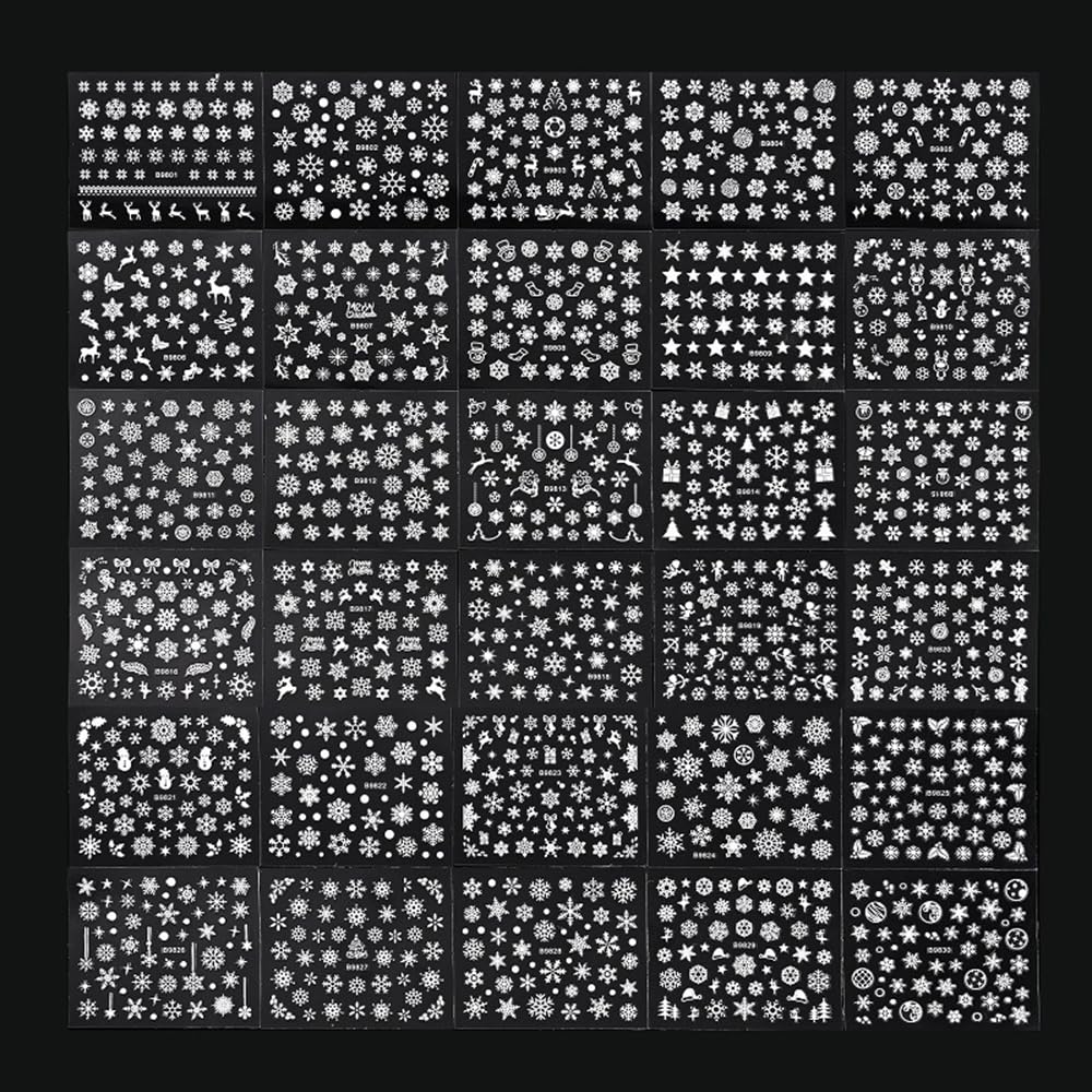 • 【Quantity】You will get 30 sheets 3D white Christmas snowflake nail art decals, each paper measures 2 x 2.4 inches(5 x 6 cm). Contains a variety of Xmas snow patterns, Snowflakes of various shapes nail stickers are perfect for matching other Xmas nail art.