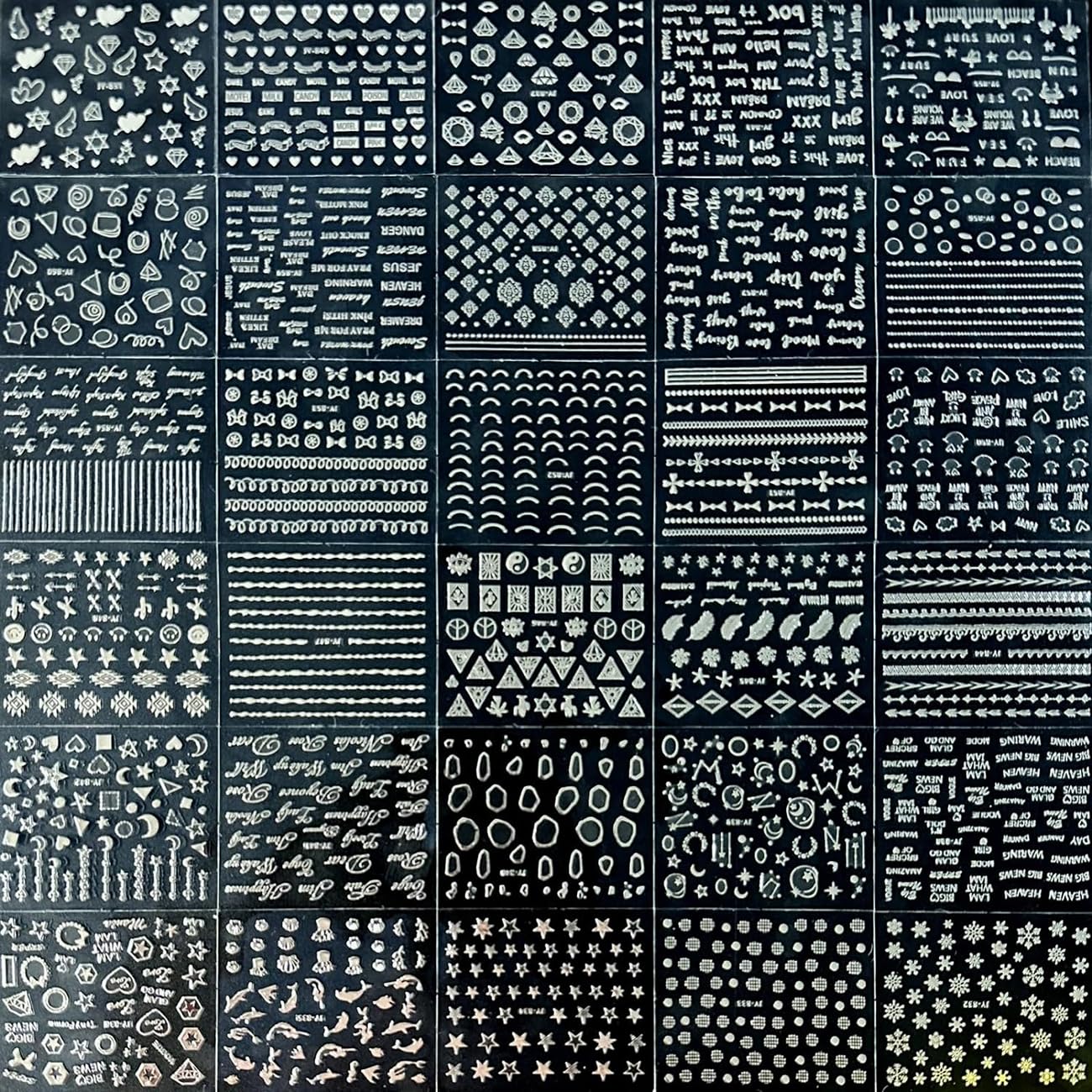 30 Sheets Silver Nail Art Stickers 3D Self-Adhesive Line Nail Decals Silver Star Nail Stickers Moon Heart Nail Supplies Nail Art Design for DIY Acrylic Nails Decoration Accessories for Women