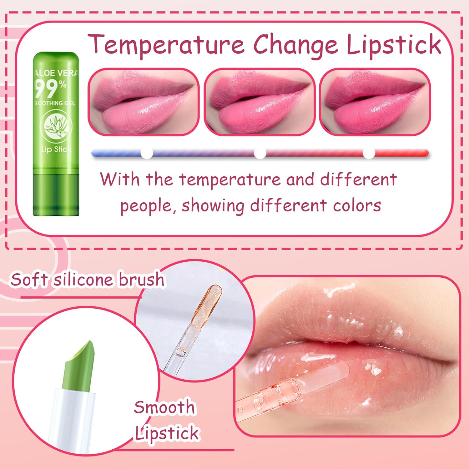 • Color Changing Lipstick:The magical aloe vera lipstick will change colour according to the temperature of your lips, giving you a unique and beautiful lip make-up, with a natural and beautiful finish, perfect for everyday lip make-up, casual, party and office use