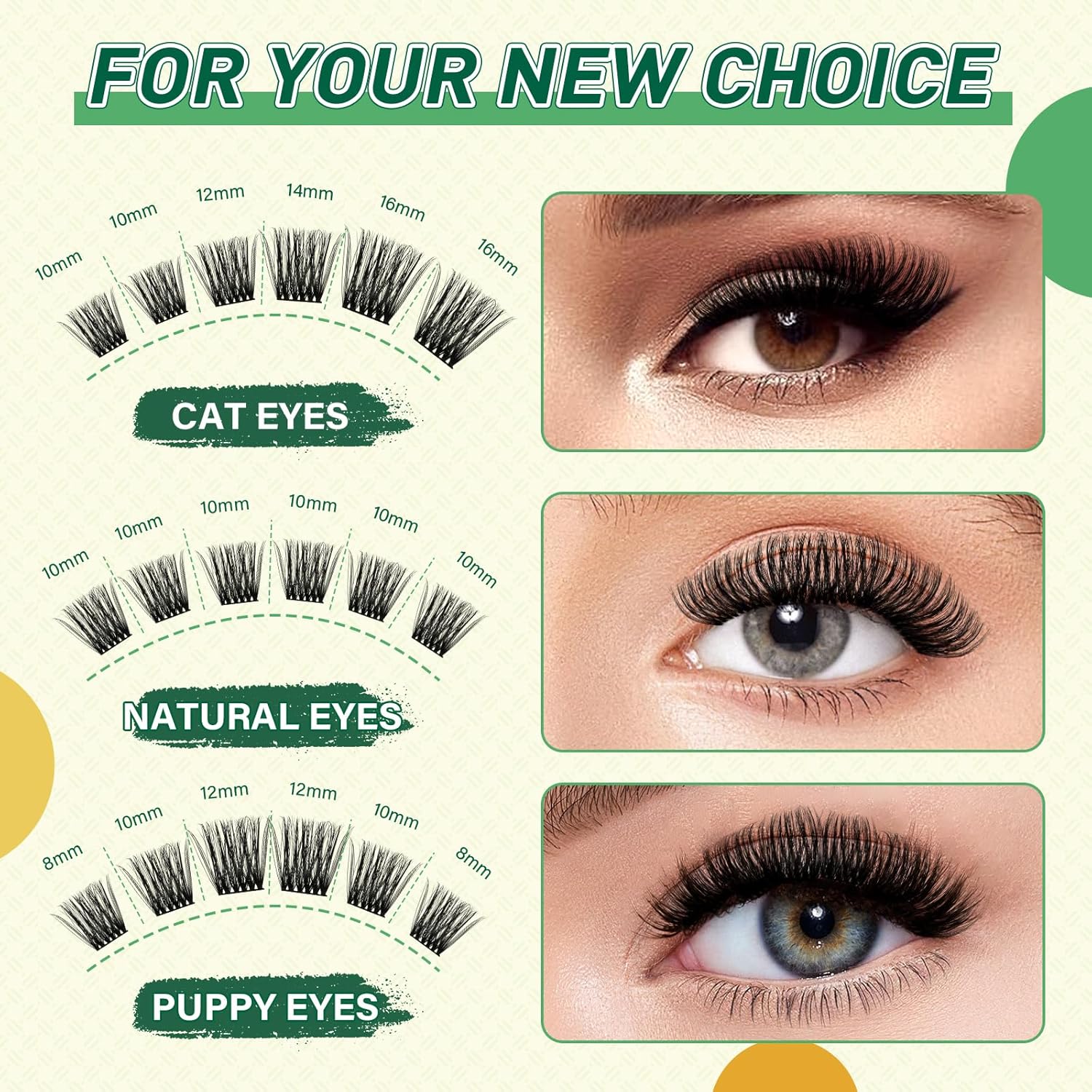 • 【144pcs High Quality Cluster Lashes】The simulated eyelash material is more realistic and will not feel plastic, comfortable and non-irritating on the eyes, allowing you to easily maintain a perfect makeup all day long.