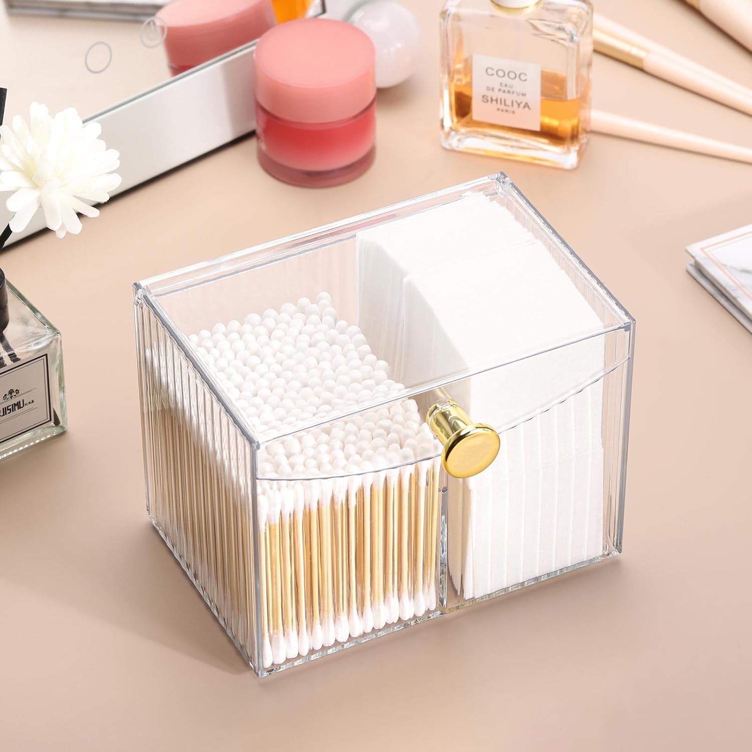 Tbestmax Qtip Holder Dispenser 2-Section Clear Bathroom Organizer 2 Grids Cotton Swab/Pad/Ball Holder Container Cosmetics Storage for Vanity