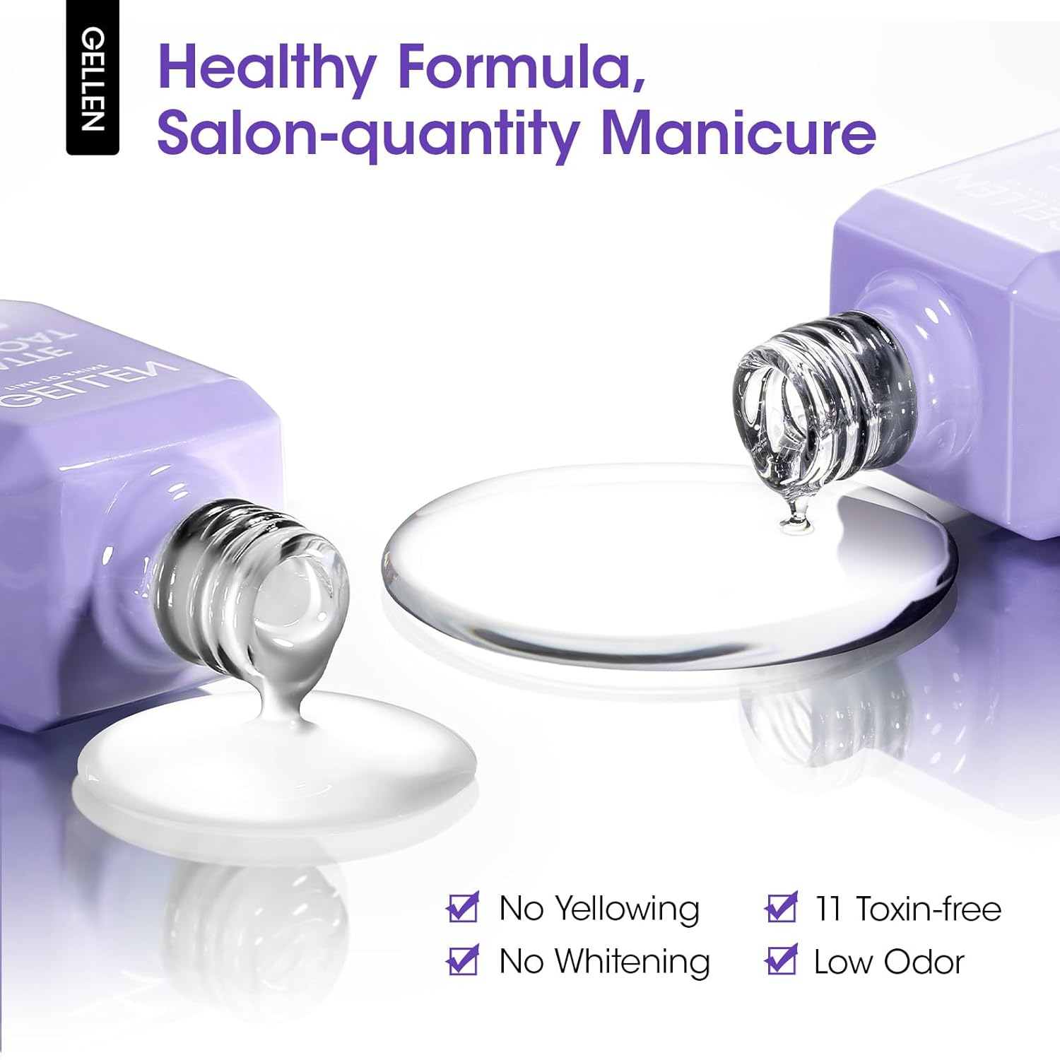 • Natural & Healthy No Wipe Nail Top Coat: Gellen gel nail top coat is crafted from a gentle and natural resin formula, free of harmful ingredients, non-toxic, non-yellowing, low in odor, and skin-friendly. It effectively addresses common issues with other UV top coats such as nicks, chips, and smudges while promoting healthy nails. Feel confident in choosing Gellen top coat for your nail art manicure & nail salon!