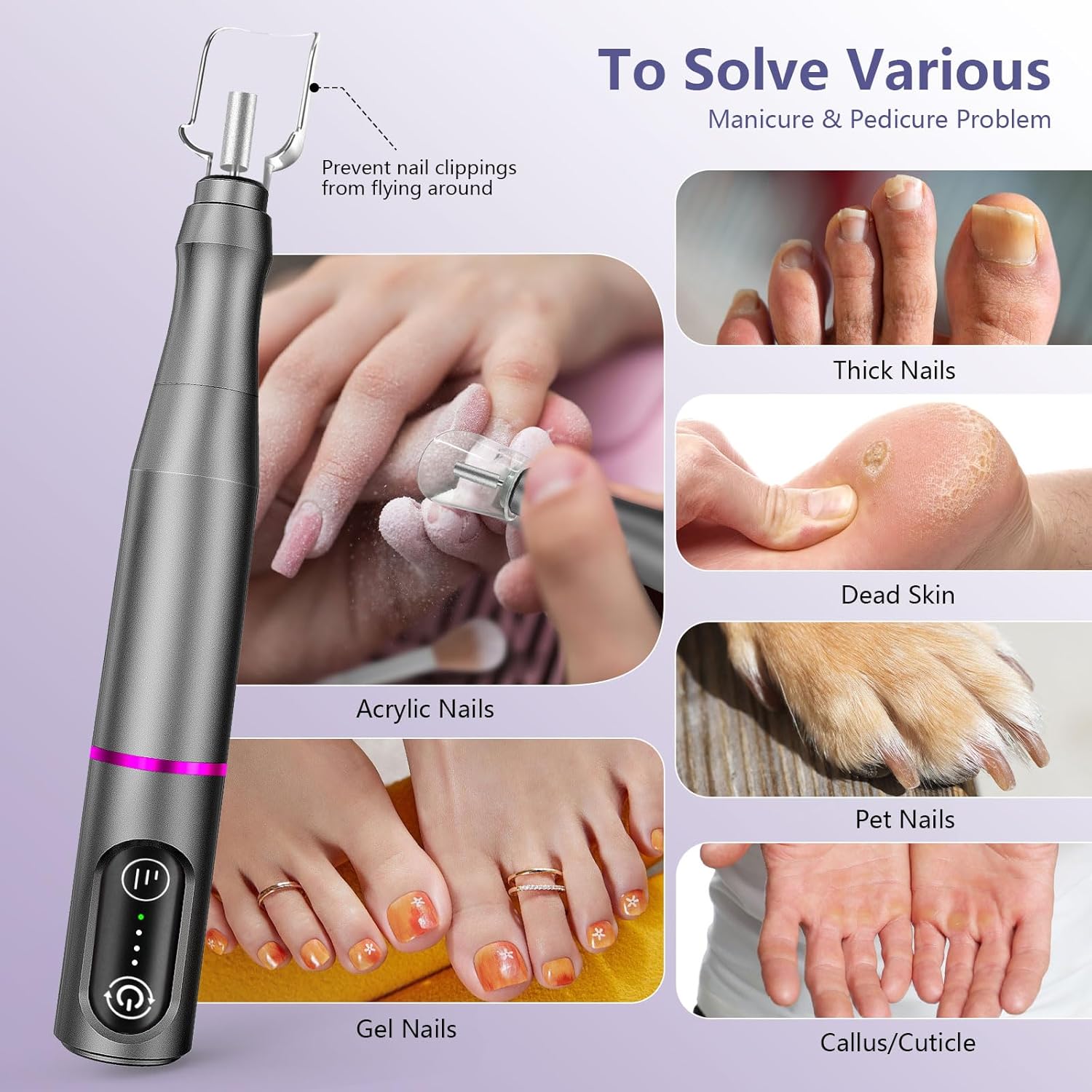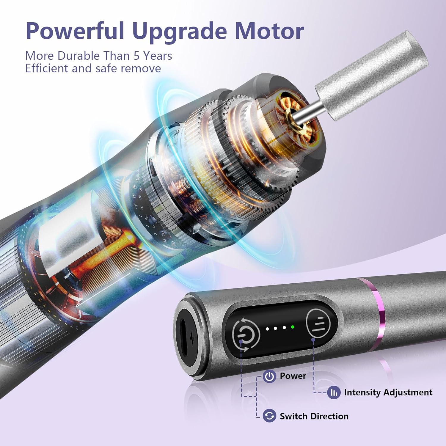 • Professional & Portable: The nail drill features an ergonomic design and lightweight body ensure that you can maneuver the tool with precision, making it easy to control even for extended periods. The easy-to-use speed and direction controls are intuitive, allowing both left-handed and right-handed users to achieve professional results with minimal effort. Whether you're at home or on trip, you can keep your nails looking salon-perfect without the need for lengthy cords or bulky equipment