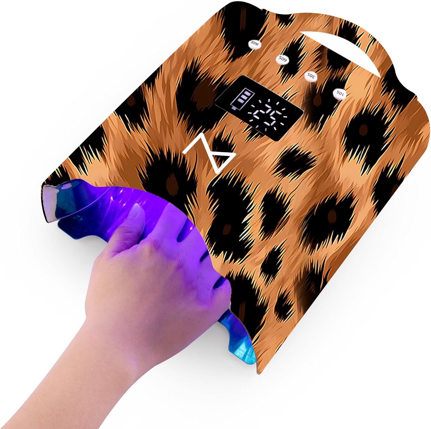 M - NEO Cordless & Rechargeable Nail Curing Lamp 78W with 4 LCD Time Display Timer, Auto Sensor, and Spacious Interior for All Hand Sizes and Nail Lengths (Leopard)