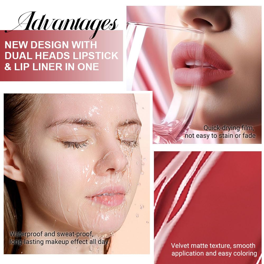 • 【2 IN 1 Lip Liner & Liquid Lipstick】The double ended design made you can use lipstick and lip liner on both ends. New design with dual heads lipstick & lip liner in one, for draw delicate lip line before applying lipstick. It combines lip line and liquid lipstick and makes double-end lipstick more perfect,meets the need of all occasions.