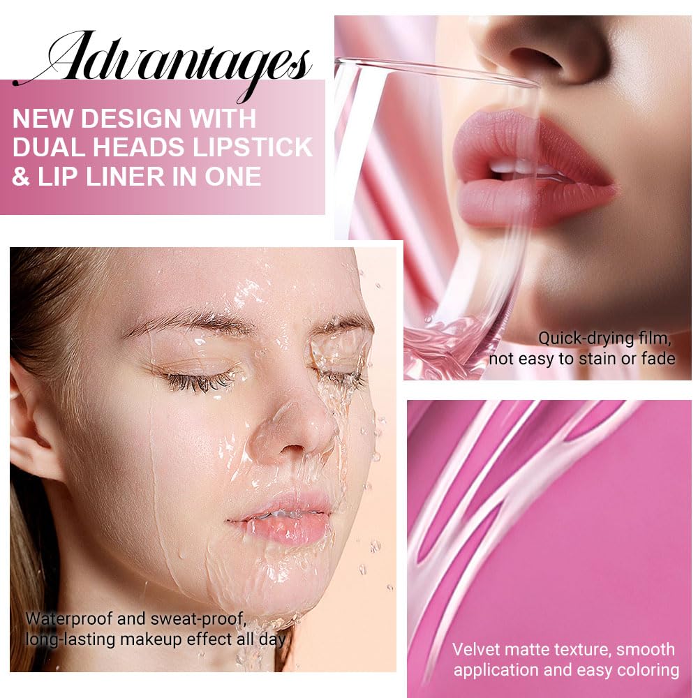• 【2 IN 1 Lip Liner & Liquid Lipstick】The double ended design made you can use lipstick and lip liner on both ends. New design with dual heads lipstick & lip liner in one, for draw delicate lip line before applying lipstick. It combines lip line and liquid lipstick and makes double-end lipstick more perfect,meets the need of all occasions.