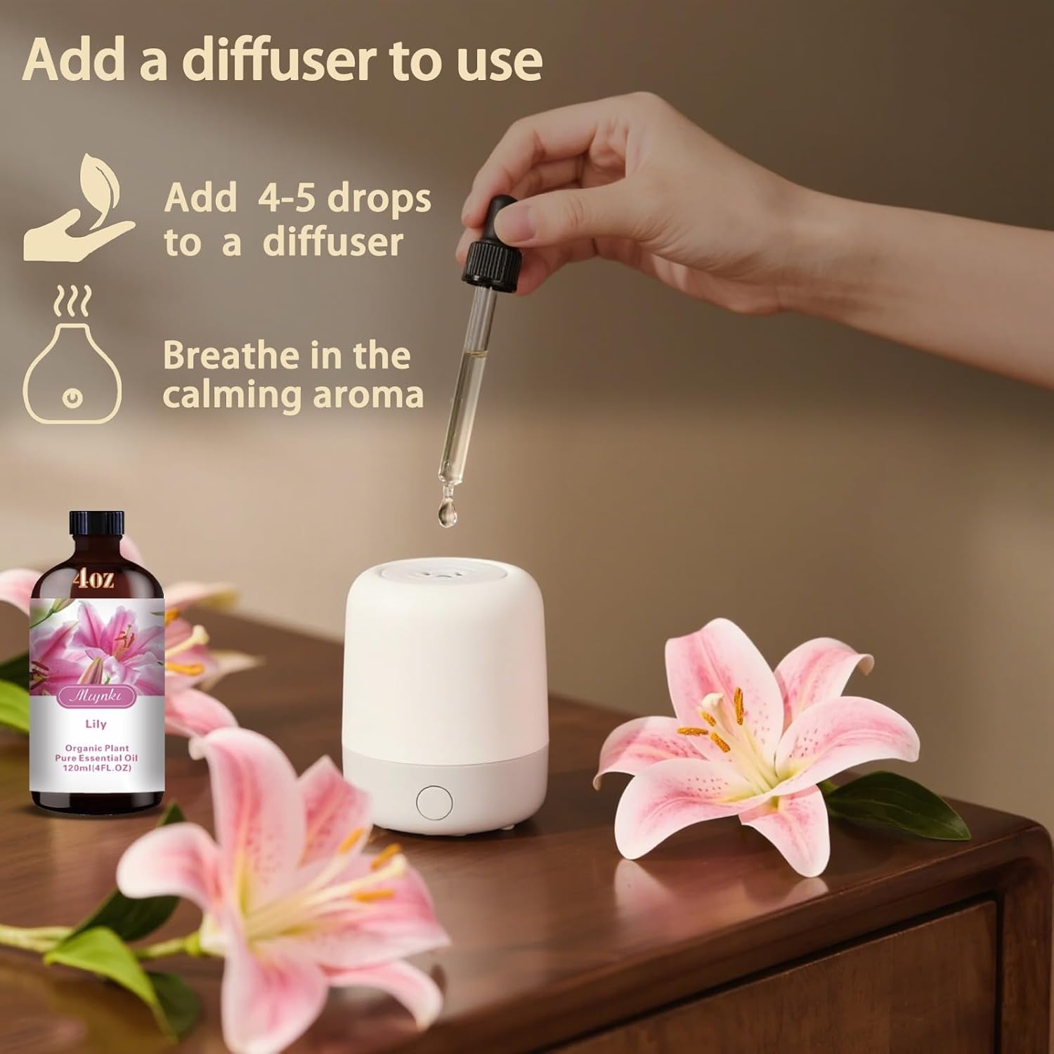 Lily Fragrance Oil-Lily Essential Oil 4.33oz (130ml)-100% Pure Natural Scent for Diffusers, Candles, Soap Making & Aromatherapy-Relaxing Home & Gift Essential Oil for Bath, Massage
