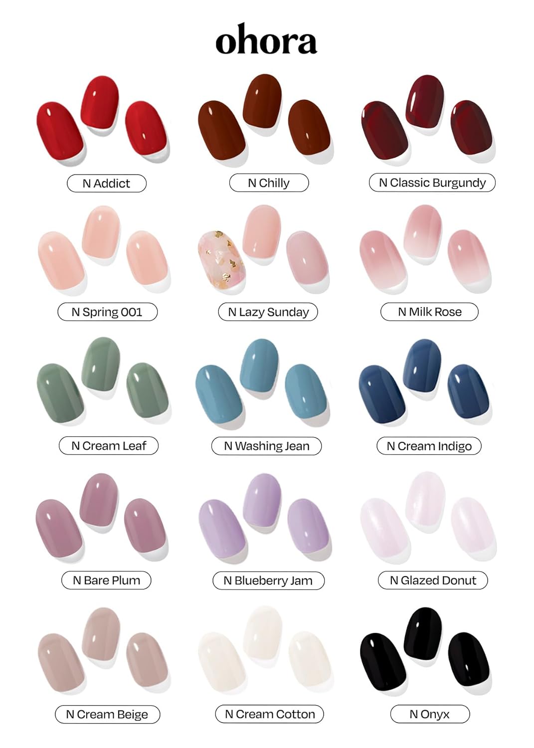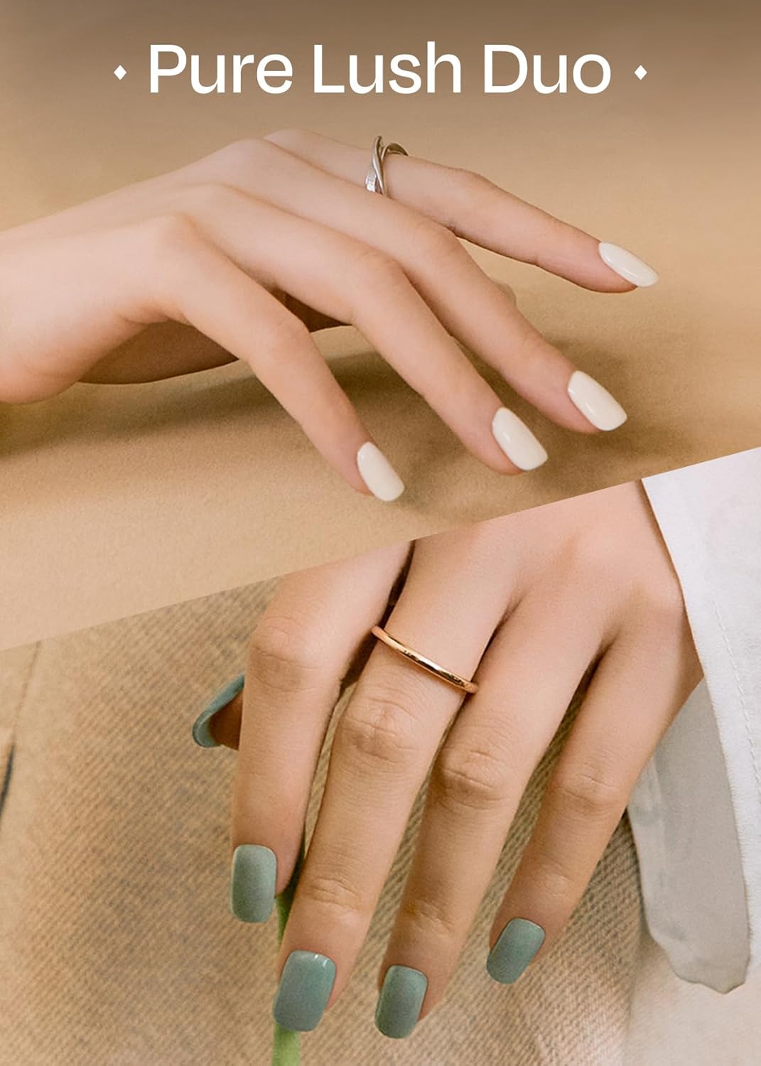 ohora Bundle Set (Pure Lush Duo) - N Cream Leaf and N Cream Cotton Semi-Cured Gel Nail Strips, Works with Any UV/LED Lamps, Salon-Quality, Long Lasting, Easy to Apply & Remove