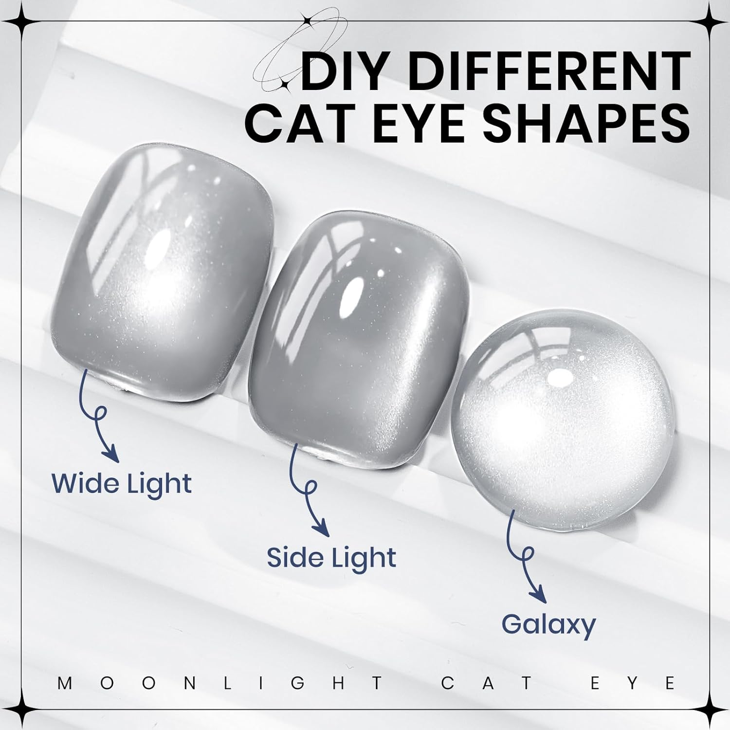 • Silver Cat Eye Gel Polish: 1*15ml(0.5fl oz) moonlight glassy cat eye gel nail polish with 1PC magnetic stick. Achieve a flawless application with no black spots, allowing the cat eye effect to shine through beautifully