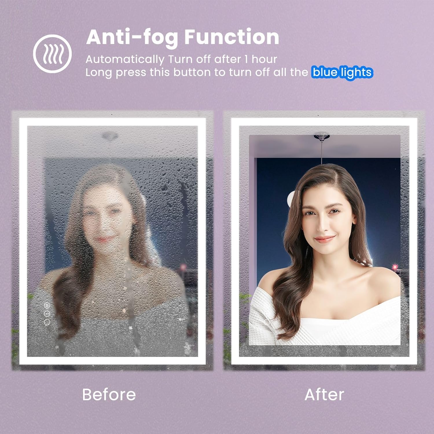 • [No more foggy mirrors! ] Amorho mirror supports fog removal function, which can quickly clear the fog of the mirror surface in 1 minute. And shut off automatically after one hour