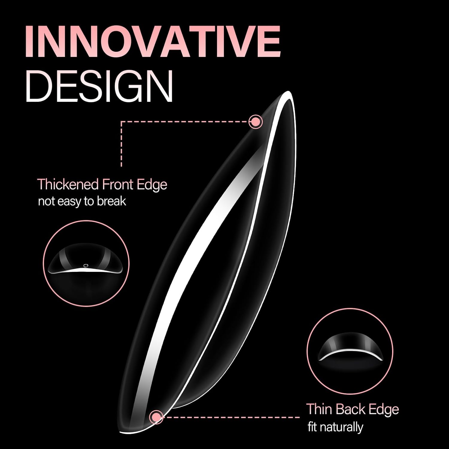 • Natural Fit Effect: Our soft nail tips feature “ Thin back edge, thick front edge”. The thinner back edge can make the full nail tips fit your nails better, which will not make you feel uncomfortable. Also, the clear nails are more breathable, which will not cause burden and pressure on your fingers; The thickened front edge makes it not easy to break or bend, having longer lifespan. Just like your natural nails, do whatever you want!