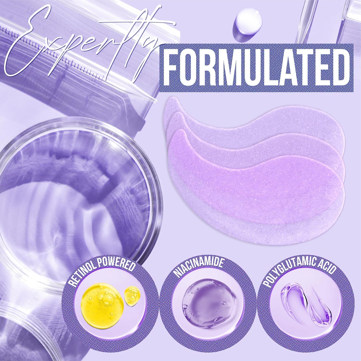 DIAMOND GAZE Under Eye Patches 28 Pairs, Rejuvenate Eye Area, Soothing Hydrate Brighten Skin, Plumps Fine Lines, Hydrogel Eye Mask with Retinol, Niacinamide and Polyglutamic Acid, Eye Gel Pads