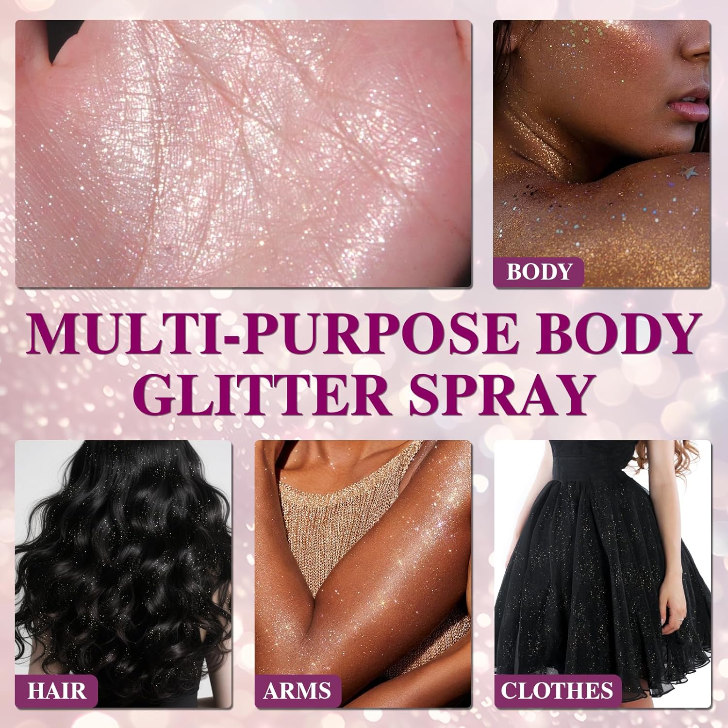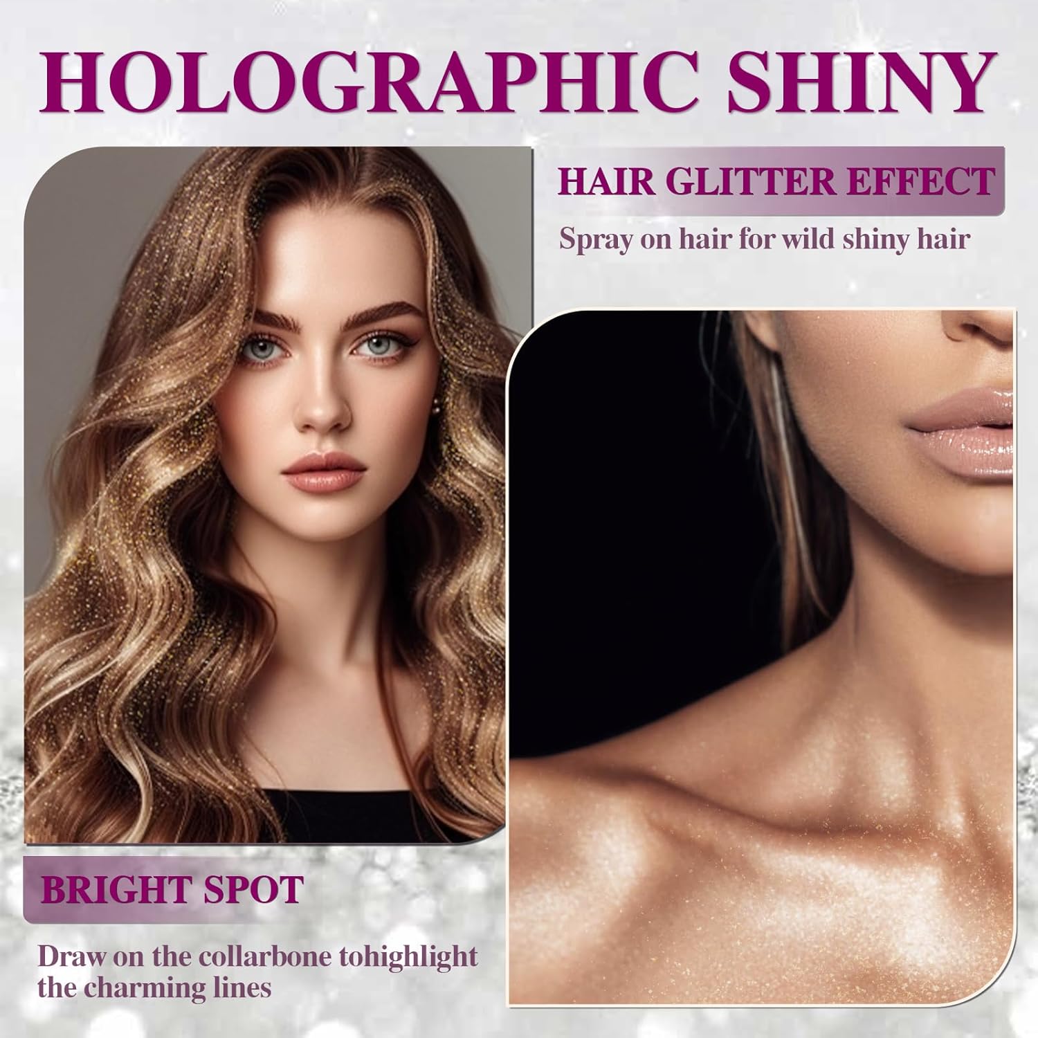 • 【Highlight Body Glitter Spray】Body glitter spray is the perfect for your hairstyle and makeup routine. Perfectly prepared for festivals, clubs, parties, raves, costumes, and themed events.