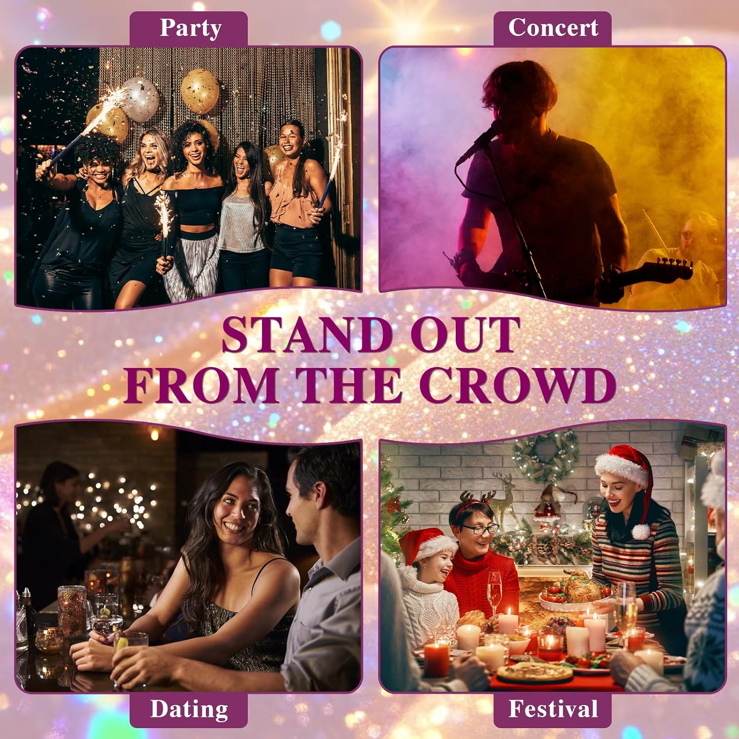 • 【Easy to Use & Clean】Simply shake the bottle, spray from 20-30cm away onto hair, body, or clothes, and let it set for 60 seconds.And stays put through sweat and humidity. Our hair glitter spray can be easily removed with soap and water.