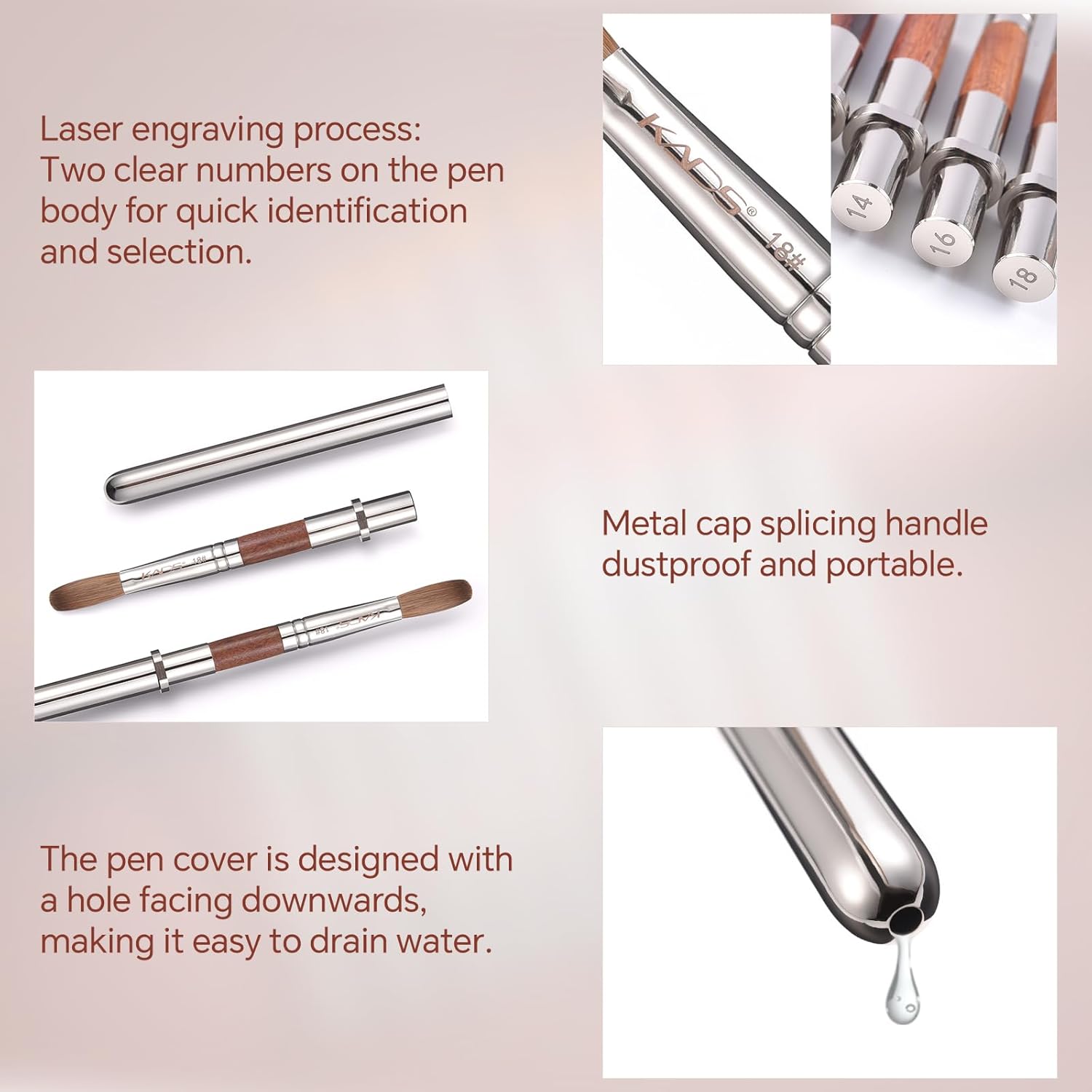 KADS Acrylic Nail Brush with Penholder Nail Brush for Acrylic Application-Oval Shaped Powder Nail Design Tools for Professional Manicure DIY Home Salon (2#+8#+14#)