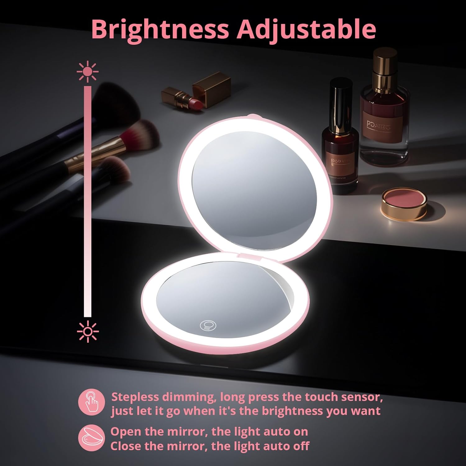 • Double Sided Lighted Mirror with 1x/20x: Upgraded compact mirror provides lighting for both mirror sides. 20x magnified mirror make you more efficient in doing face beauty, checking skin and hair style, and eyelash makeup